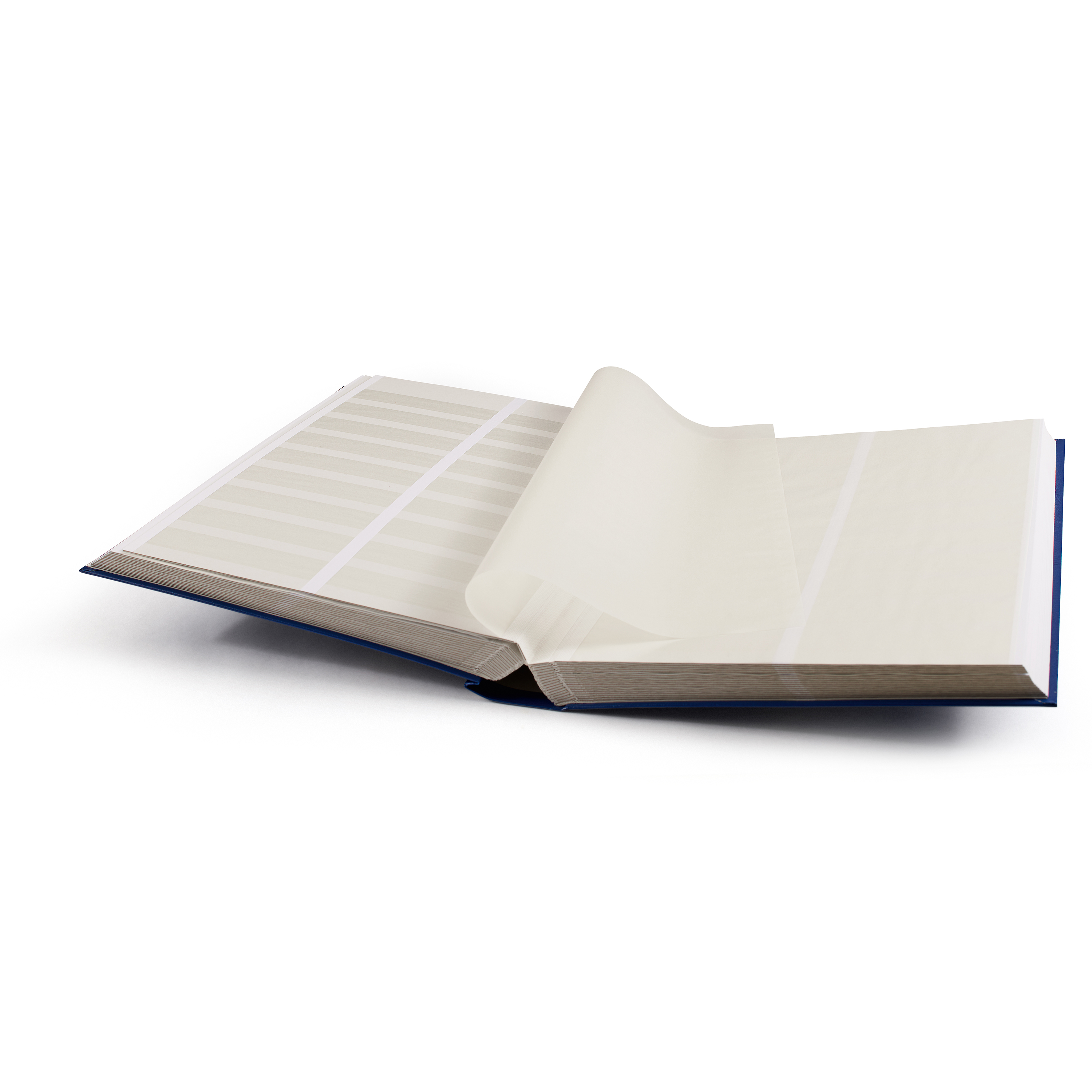 BASIC Einsteckbuch A4*, 64 weiße Seiten, geteilt, unwattierter Einband, 9 Pergaminstreifen pro Seite, Zwischenblätter doppelt, Doppel-Gelenk-Bindung.