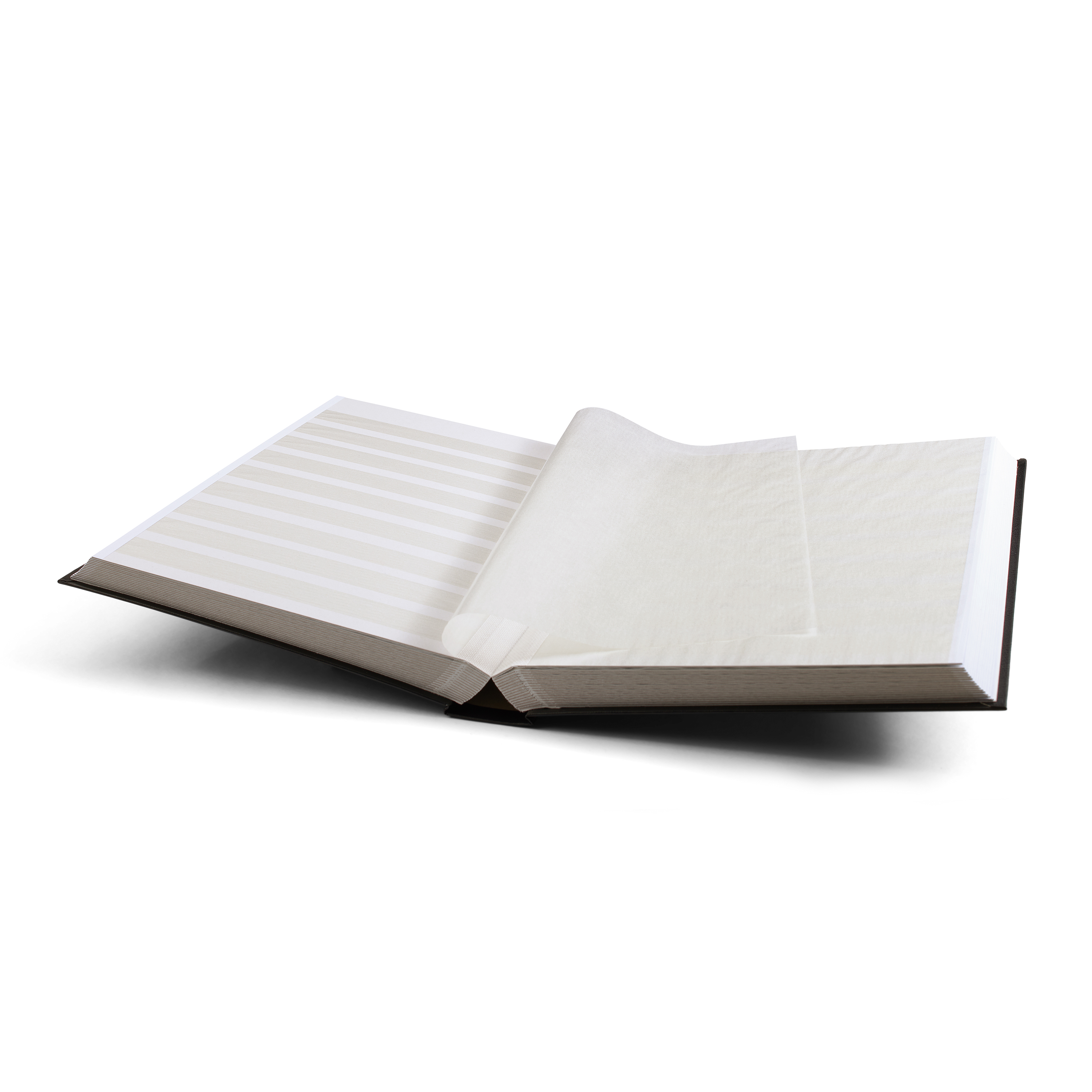 BASIC Einsteckbuch A4*, 64 weiße Seiten, unwattierter Einband, 9 Pergaminstreifen pro Seite, Zwischenblätter doppelt, Doppel-Gelenk-Bindung.