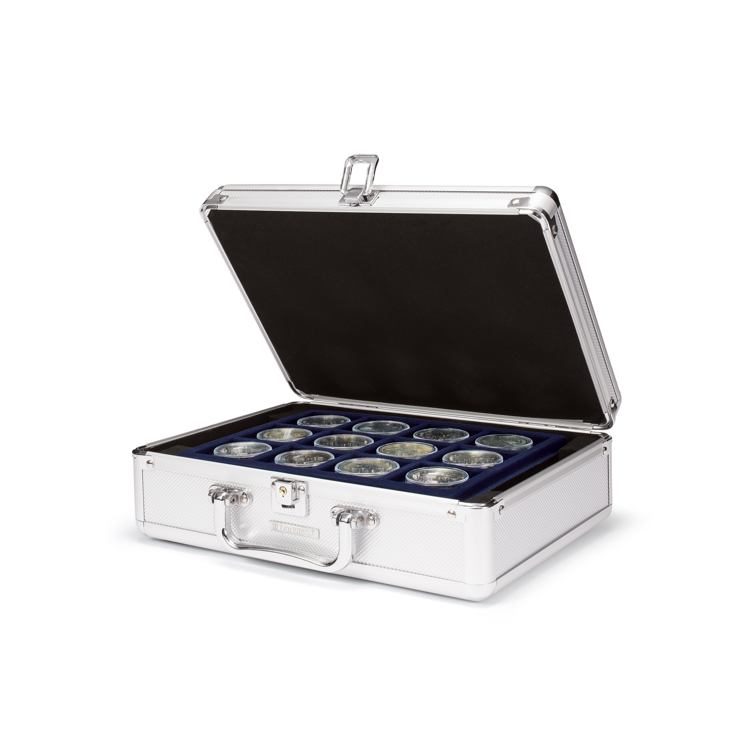 Der kleine Münzkoffer Cargo S6 bietet eine stilvolle und sichere Aufbewahrungslösung für Ihre Münzsammlung. Er ist komplett mit edlem, dunkelblauem Velours ausgekleidet, was nicht nur für eine ansprechende Optik sorgt, sondern auch Ihre Münzen optimal schützt. Der ausgepolsterte Kofferdeckel gewährleistet zusätzlichen Schutz, während der abschließbare Verschluss mit zwei Schlüsseln für Sicherheit sorgt. Im Inneren des Koffers befinden sich sechs Tableaus, die jeweils Platz für je 20 Münzen mit einem Durchmesser von bis zu 41 mm bieten. Der Cargo S6 vereint Funktionalität und Eleganz und ist die perfekte Wahl für anspruchsvolle Münzsammler.