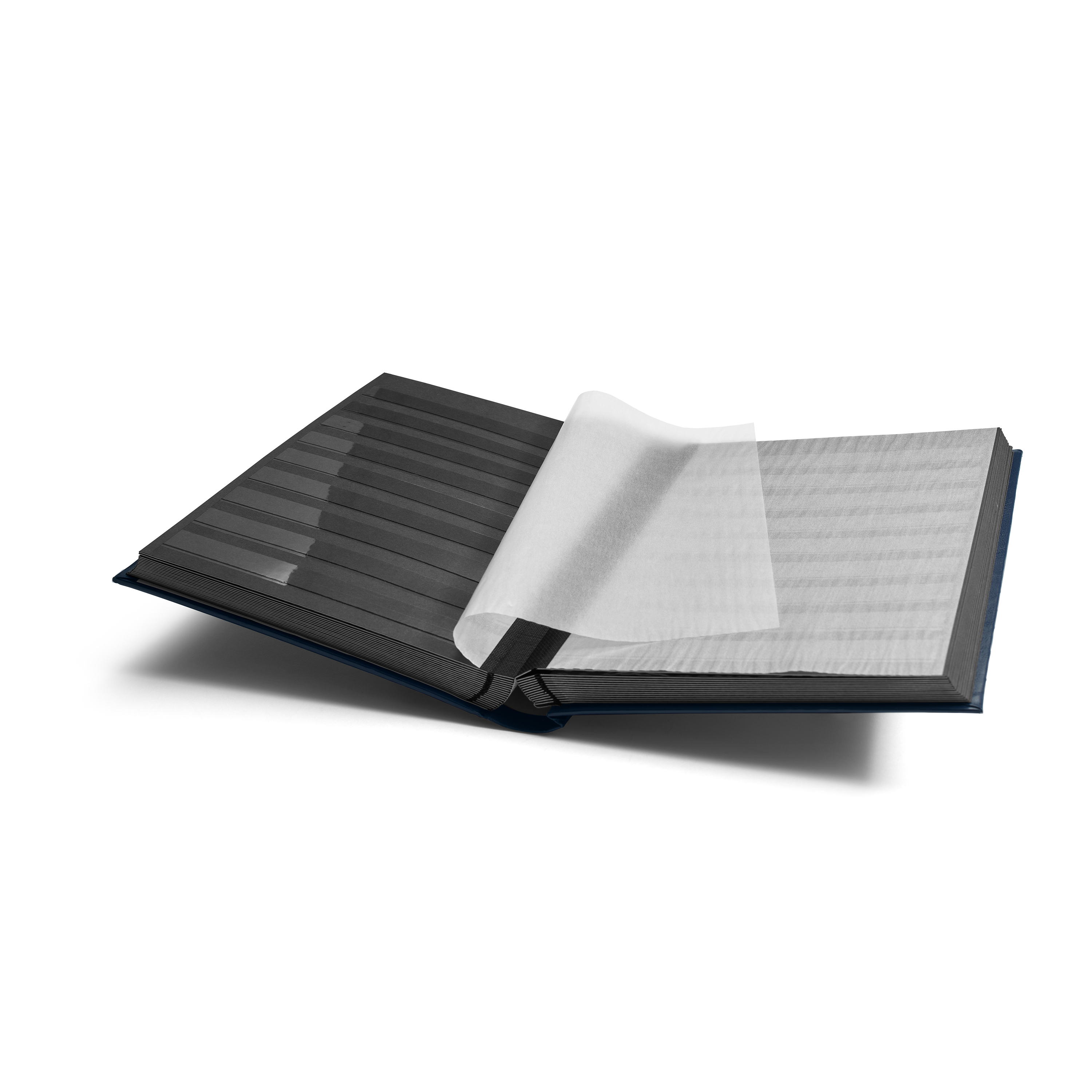 COMFORT Einsteckbuch A4, 64 schwarze Seiten, wattierter Einband, 9 Klarsichtstreifen pro Seite, Zwischenblätter doppelt, Doppel-Gelenk-Bindung.