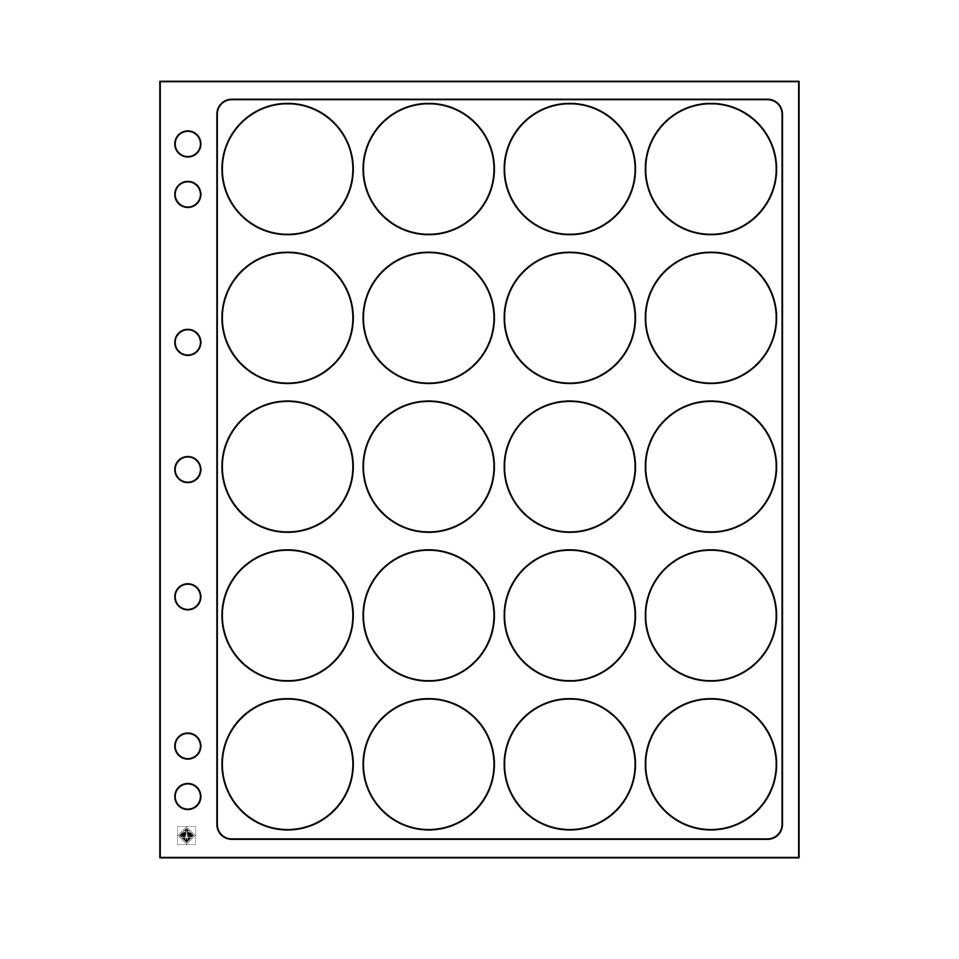 Tafel aus hochwertigem, sehr stabilem klarsichtigen Kuststoff. Zur Unterbringung von 20 Eagle, US Silver Eagles Münzen (CAPS40+41), Außenformat: 240 x 282 mm. Passend für das Grande-System