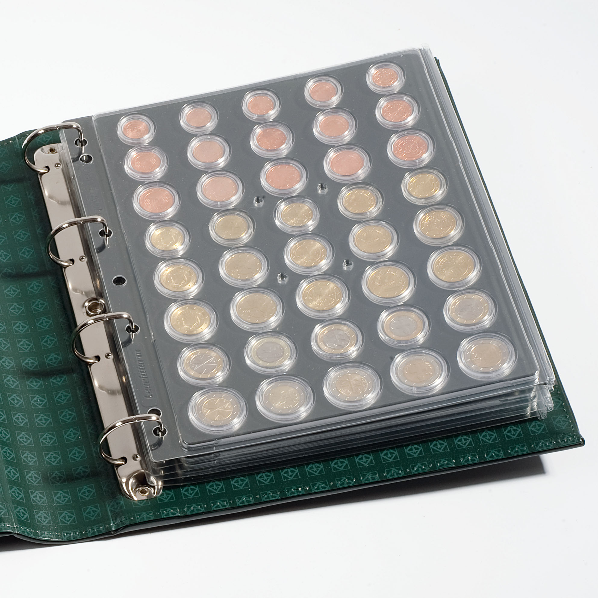 ENCAP-Hüllen bieten ein effizientes System zur Aufbewahrung von 5-Euro-Münzensätze. Hergestellt aus hochwertigem, formstabilem klarsichtigem Kunststoff (Polyester), sind sie für alle gängigen runden Münzkapseln, Quadrum-Münzkapseln sowie US-Münzkapseln erhältlich. Das Außenformat beträgt 282 x 235 mm. Die Hüllen passen problemlos in alle GRANDE-Binder oder gängigen Büroordner mit 4 Ringen. Pro Packung erhalten Sie 2 ENCAP-Hüllen.