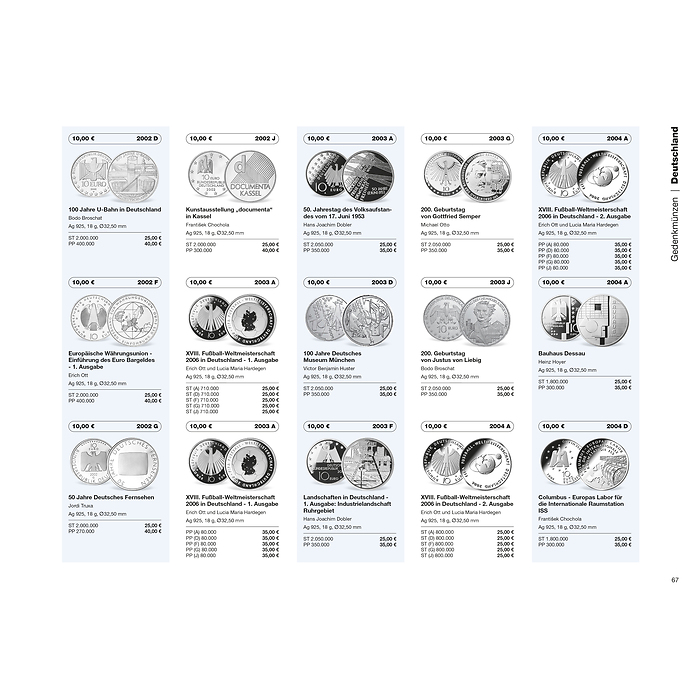 Erscheinen Sie immer auf dem neuesten Stand, denn dieser Katalog wird jährlich zum 1. Dezember aktualisiert, um sämtliche bis zum Redaktionsschluss bekannten Münzen zu berücksichtigen und die Auflagenzahlen früherer Ausgaben zu bereinigen.