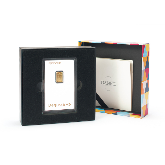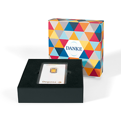 Geschenkschachtel für einen Goldbarren in Blisterverpackung „Danke“, modern