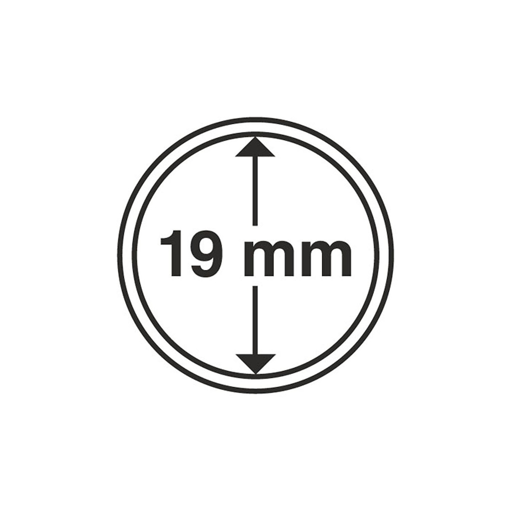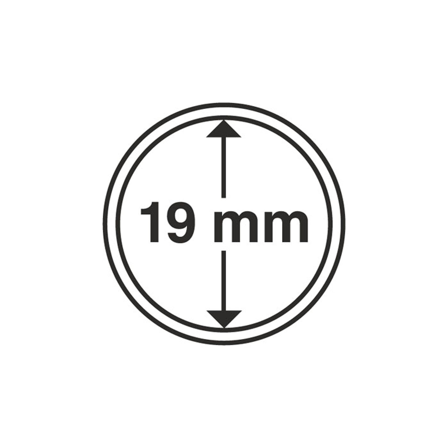 Original Münzkapseln von Leuchtturm - der optimale Schutz für Ihre Münzen.Gefertigt aus hochwertigem, kratzfestem Kunststoff. Farbe: Glasklar. Die Kapseln lassen sich aufgrund des Außenrandes leicht öffnen und verfügen dennoch über einen sicheren Verschluß. Innendurchmesser: 19 mm Außendurchmesser 25 mm. Innenhöhe: ca. 2,8 mm