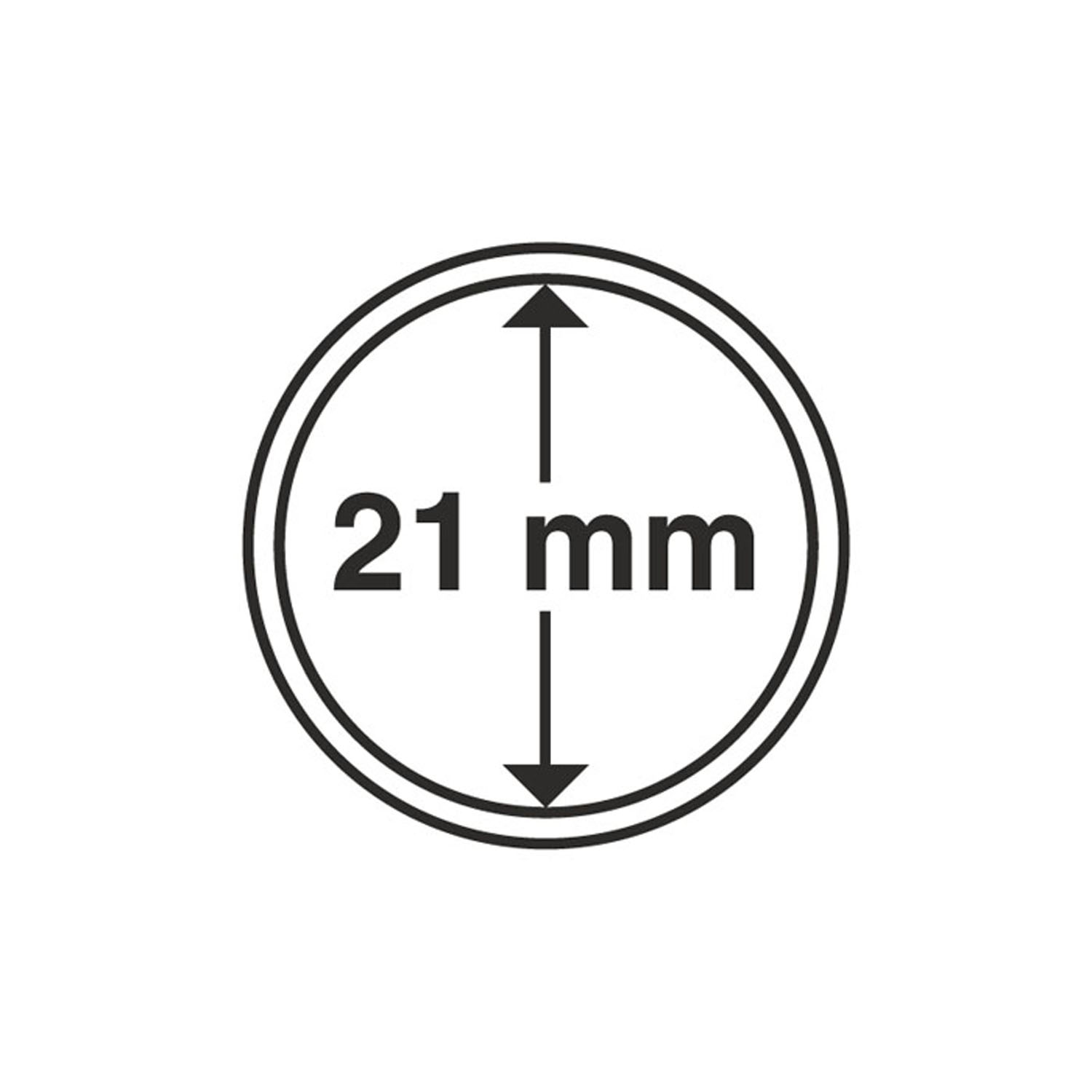 Original Münzkapseln von Leuchtturm - der optimale Schutz für Ihre Münzen. Gefertigt aus hochwertigem, kratzfestem Kunststoff. Farbe: Glasklar. Die Kapseln lassen sich aufgrund des Außenrandes leicht öffnen und verfügen dennoch über einen sicheren Verschluß. Innendurchmesser: 21 mm Außendurchmesser 27 mm. Innenhöhe: ca. 3,1 mm