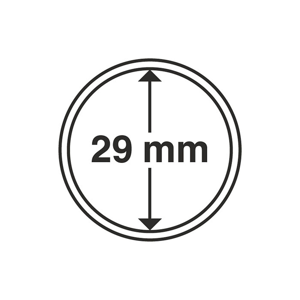 Original Münzkapseln von Leuchtturm - der optimale Schutz für Ihre Münzen. Gefertigt aus hochwertigem, kratzfestem Kunststoff. Farbe: Glasklar. Die Kapseln lassen sich aufgrund des Außenrandes leicht öffnen und verfügen dennoch über einen sicheren Verschluß. Innendurchmesser: 29 mm Außendurchmesser 35 mm. Innenhöhe: 2,9 mm