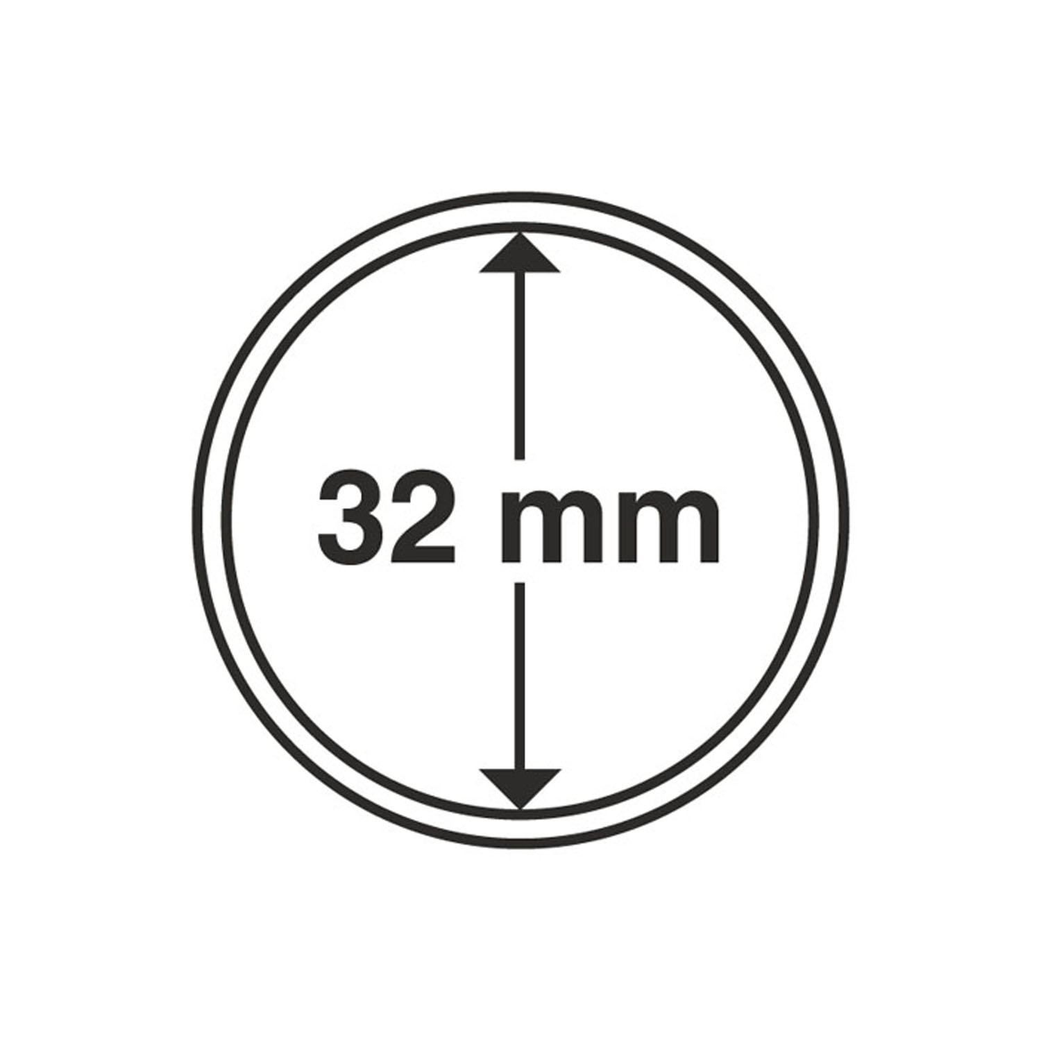Original Münzkapseln von Leuchtturm - der optimale Schutz für Ihre Münzen. Gefertigt aus hochwertigem, kratzfestem Kunststoff. Farbe: Glasklar. Die Kapseln lassen sich aufgrund des Außenrandes leicht öffnen und verfügen dennoch über einen sicheren Verschluß. Innendurchmesser: 32 mm Außendurchmesser 38 mm. Innenhöhe: 2,8 mm