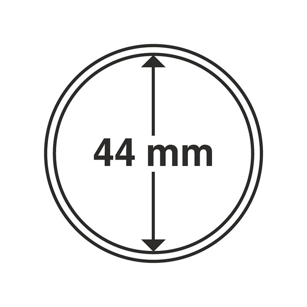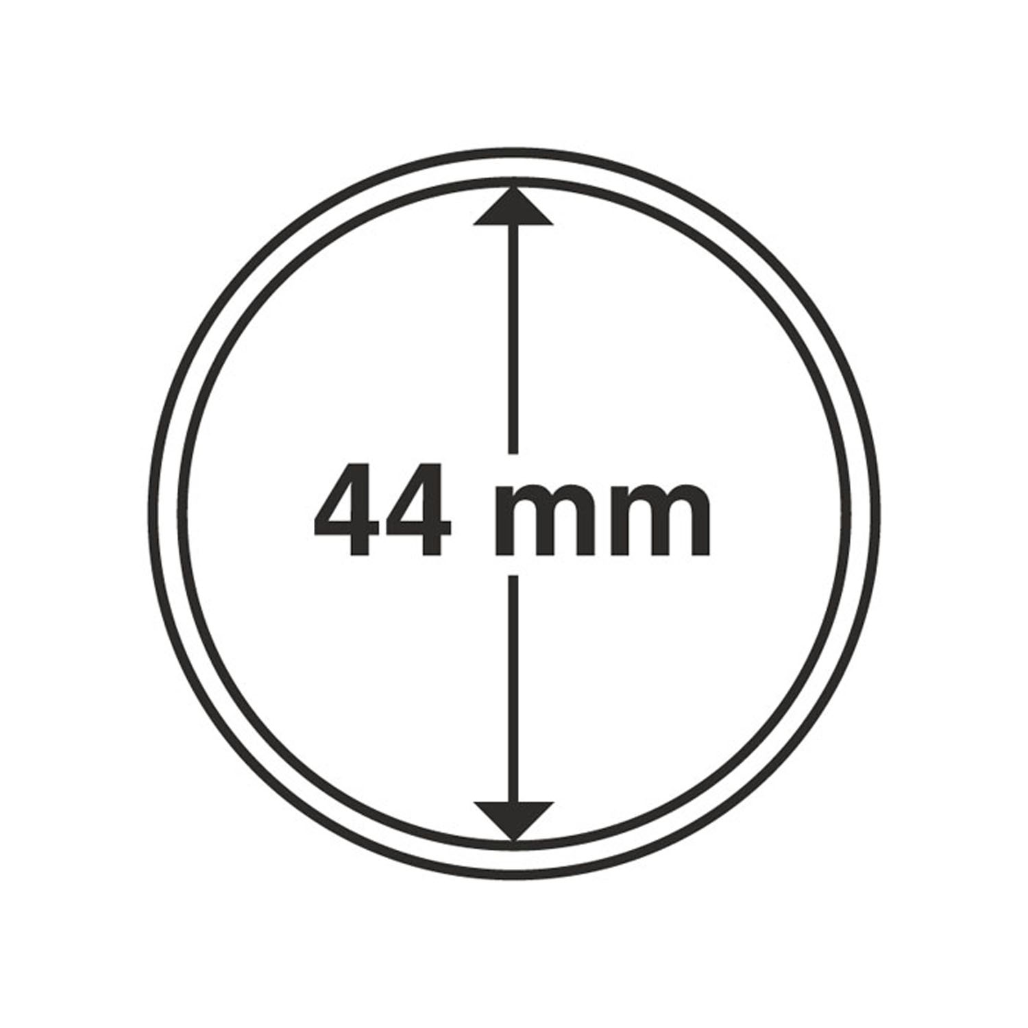 Original Münzkapseln von Leuchtturm - der optimale Schutz für Ihre Münzen. Gefertigt aus hochwertigem, kratzfestem Kunststoff. Farbe: Glasklar. Die Kapseln lassen sich aufgrund des Außenrandes leicht öffnen und verfügen dennoch über einen sicheren Verschluß. Innendurchmesser: 44 mm Außendurchmesser 50 mm. Innenhöhe: ca. 3,8 mm