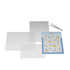 Die Verwendung von klarsichtigen Schutztaschen eignet sich z.B. ideal zum Gestalten von Vordruckseiten. Die schwarzen Klemmtaschen hingegen lassen die Zähnung der Briefmarke deutlich in Erscheinung treten und geben der Briefmarke einen „Rahmen".