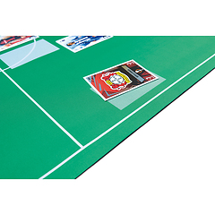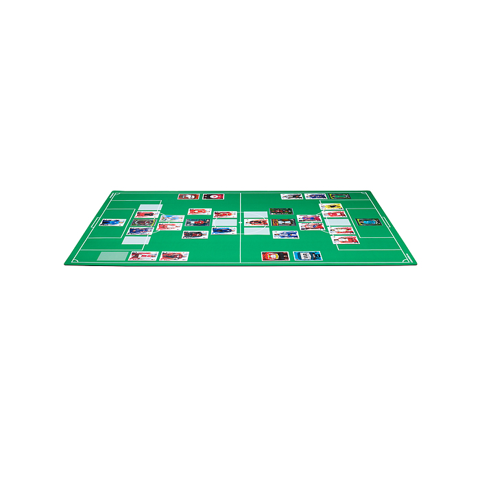 authentischen Spielfelddesign mit einer Auswechselbank für drei Spieler und einem speziellen Feld für das Team-Badge ausgestattet, bietet sie eine optimale Umgebung für taktische Planungen und Simulationen. Unsere Spielmatte ist ideal geeignet für alle gängigen Aufstellungen: von klassischen Formationen wie 4-4-2 bis hin zu Taktiken wie 4-3-3 oder 4-5-1 und mehr. Egal welche Strategien ihr wählt, diese Matte bietet genügend Raum für euer Match! Die Spielunterlage überzeugt durch ein großes Format von 65 x 109.7 cm. Sie ist aufrollbar und wird mit einer stabilen, wiederverwendbaren Hülse geliefert. Diese schützt die Matte vor Beschädigungen und erleichtert den Transport und die Lagerung, sodass du sie problemlos überallhin mitnehmen kannst. Ein enthaltener Chip für den Münzwurf lässt Stadionatmosphäre aufkommen und ermöglicht einen fairen Start.