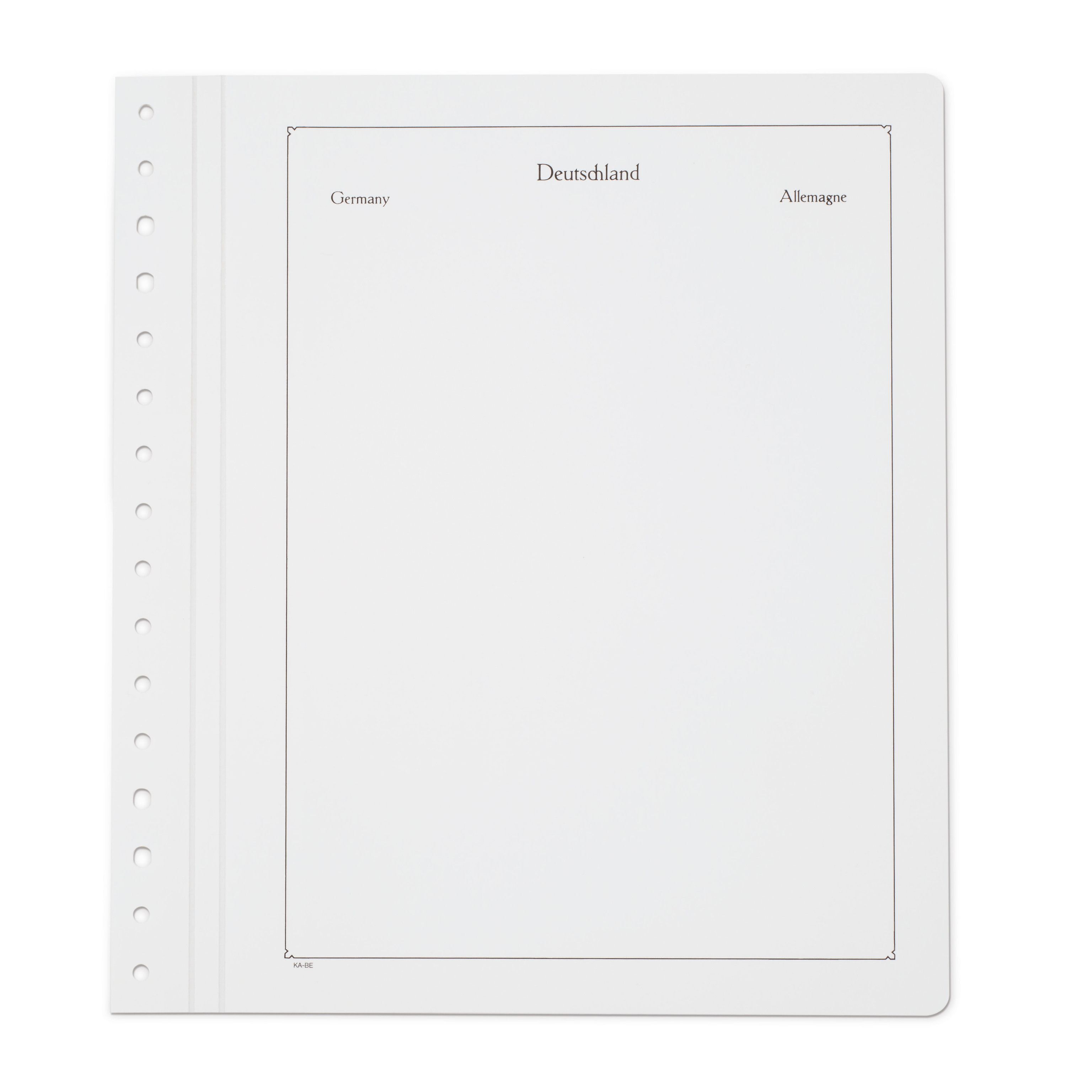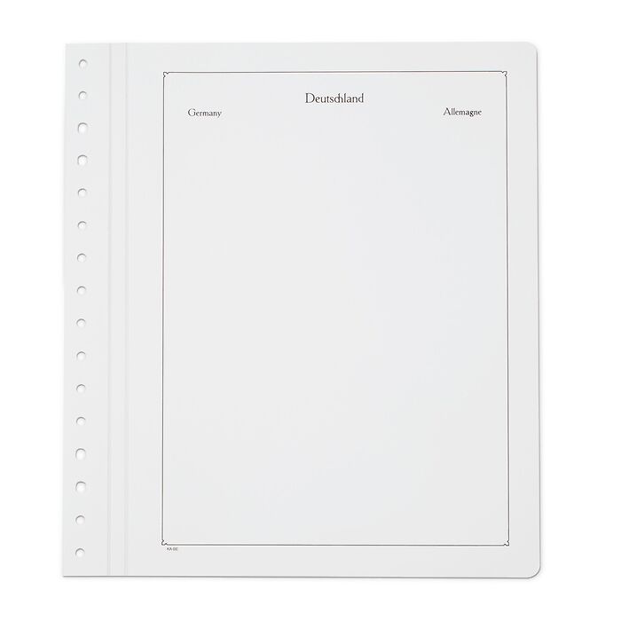 Albenblätter mit Landesbezeichnung zur weiteren Ergänzung der Vordruckalben sowie zum Aufbau individueller Sammlungen. Das Blattformat ist ein heitlich 275x310 mm und passend für alle KABE-Albenbinder.