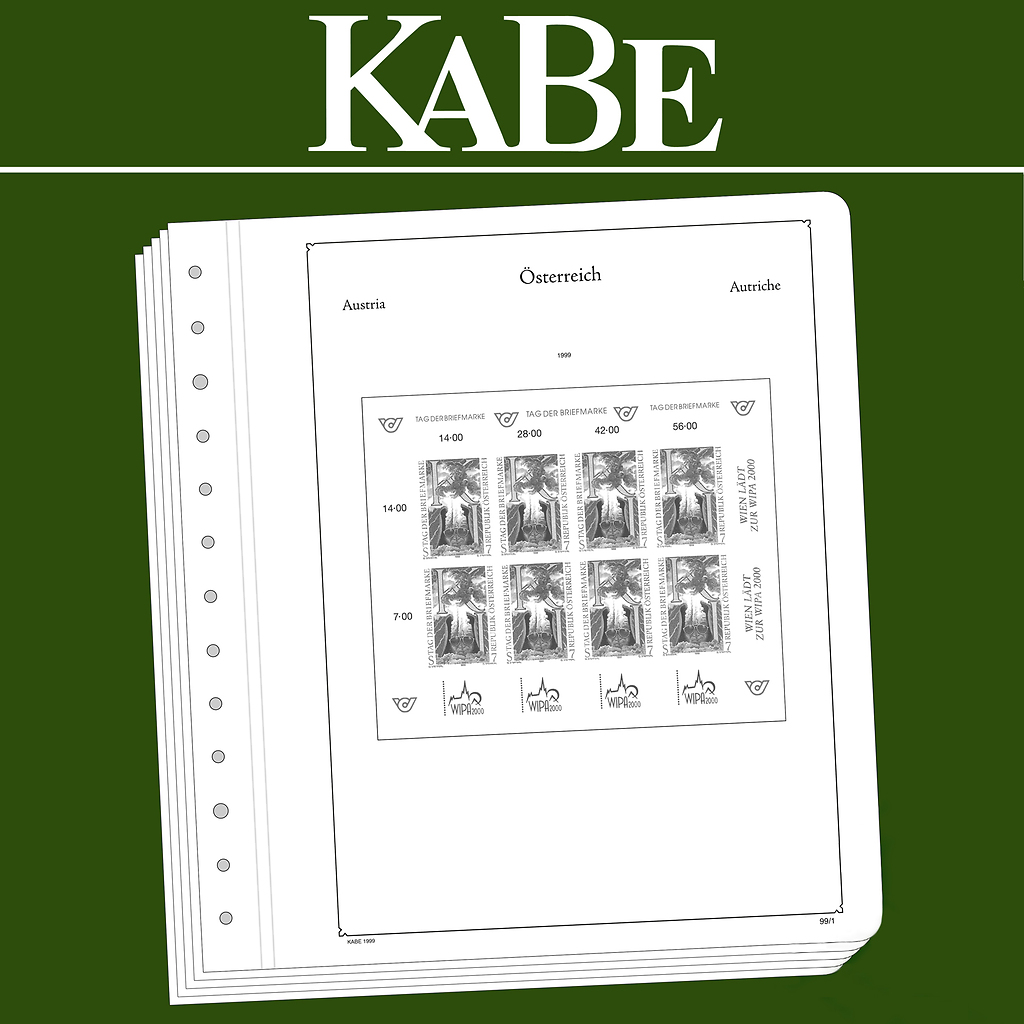 KABE Vordruckblätter (Format 275 x 310 mm) werden im detailgetreuen schwarz–weiß Offsetdruckauf alterungsbeständigem, holz- und säurefreiem Karton (175 g/m 2 ) gedruckt. Wir verzichten bewusst auf einen Farbdruck. Dies dient als Orientierungshilfe, damit Sie auf einen Blick sehen, welche Marken Ihnen noch fehlen. In der Größe des Markenvordrucks sind