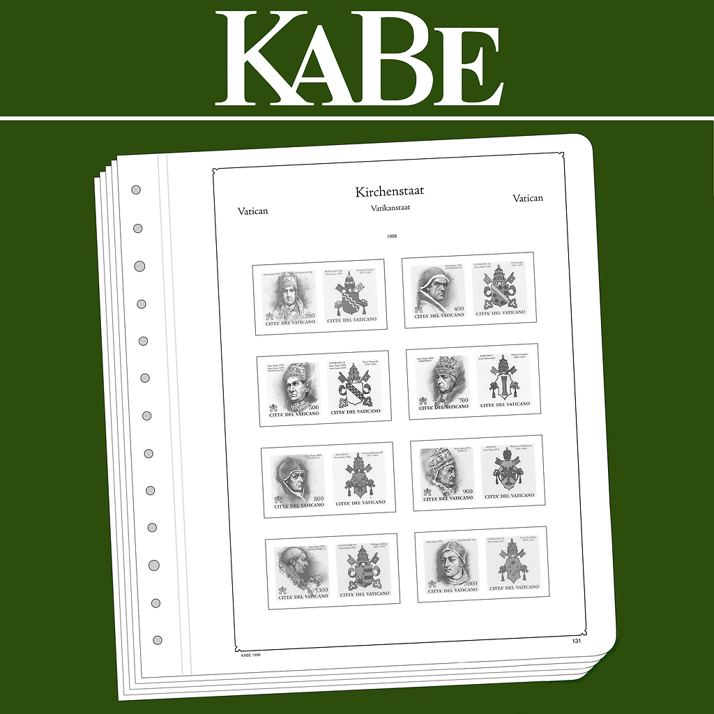 KABE Vordruckblätter (Format 275 x 310 mm) werden im detailgetreuen schwarz–weiß Offsetdruckauf alterungsbeständigem, holz- und säurefreiem Karton (175 g/m 2 ) gedruckt. Wir verzichten bewusst auf einen Farbdruck. Dies dient als Orientierungshilfe, damit Sie auf einen Blick sehen, welche Marken Ihnen noch fehlen. In der Größe des Markenvordrucks sind