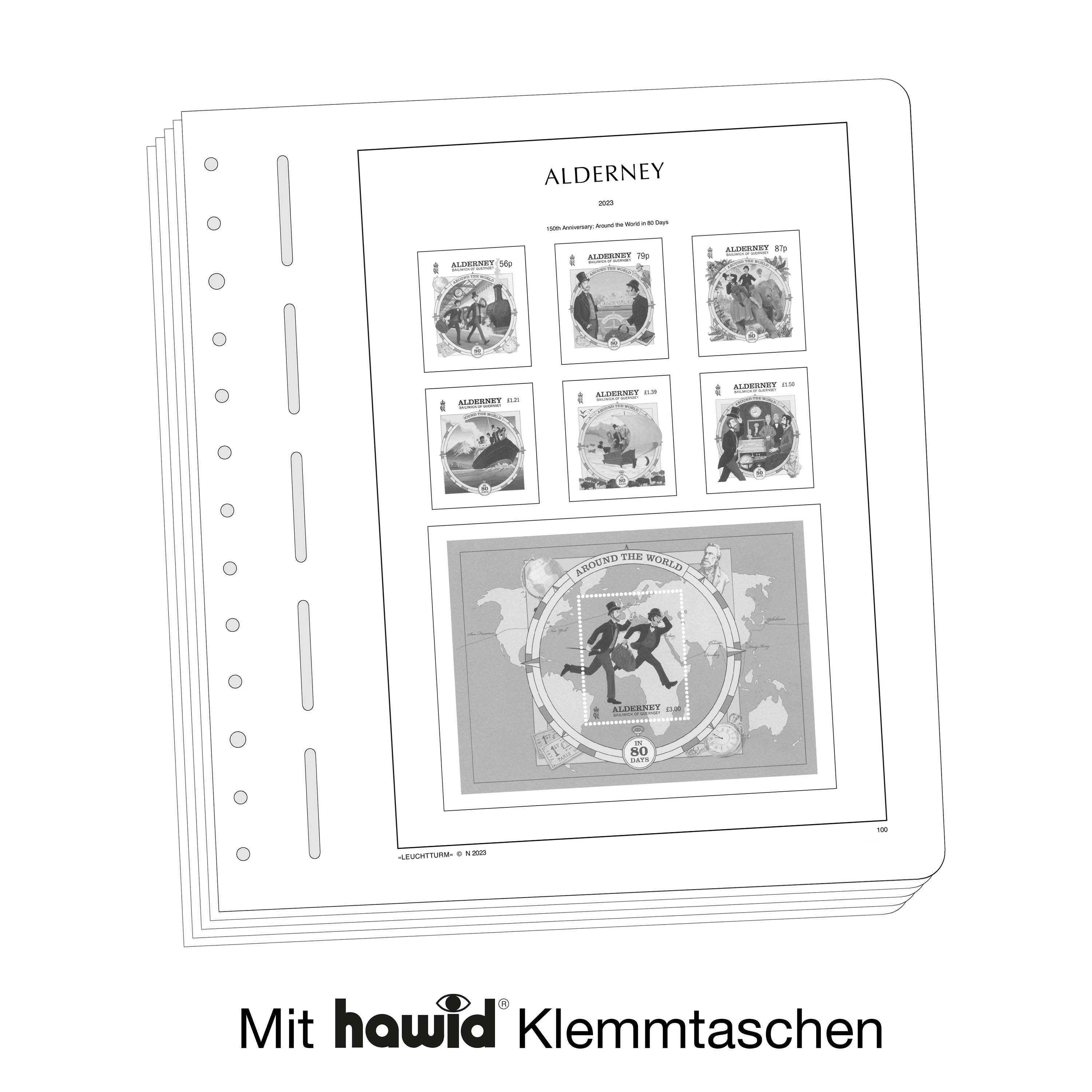 LEUCHTTURM Albenblätter (Format 270 x 297 mm/ 13-Loch-System) werden im detailgetreuen schwarz–weiß Offsetdruckauf alterungsbeständigem, holz- und säurefreiem Karton (170 g/m 2 ) gedruckt. Wir verzichten bewusst auf einen Farbdruck. Dies dient als Orientierungshilfe, damit Sie auf einen Blick sehen, welche Marken Ihnen noch fehlen. In der Größe des Markenvordrucks sind