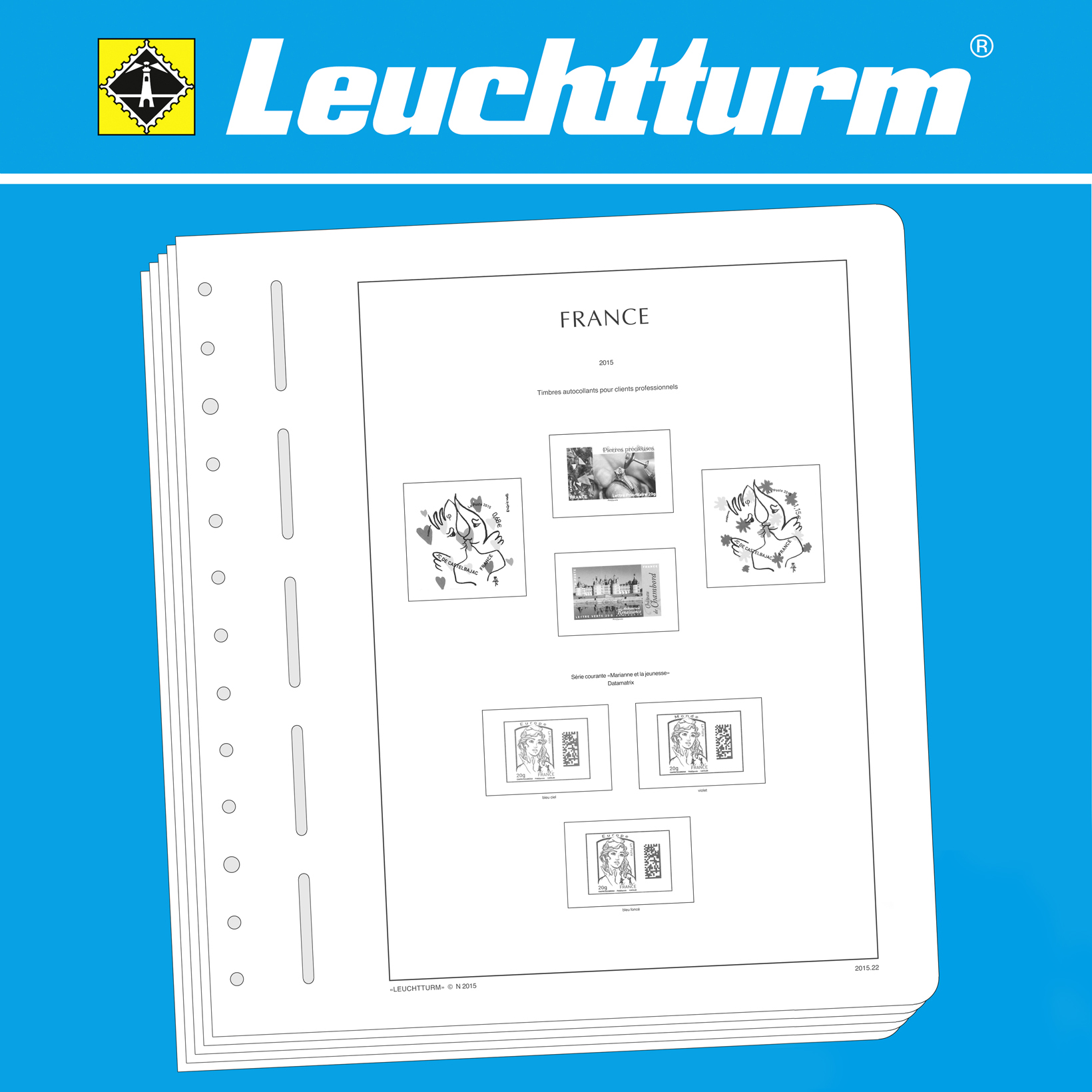 LEUCHTTURM Albenblätter (Format 270 x 297 mm/ 13-Loch-System) werden im detailgetreuen schwarz–weiß Offsetdruckauf alterungsbeständigem, holz- und säurefreiem Karton (170 g/m 2 ) gedruckt. Wir verzichten bewusst auf einen Farbdruck. Dies dient als Orientierungshilfe, damit Sie auf einen Blick sehen, welche Marken Ihnen noch fehlen. In der Größe des Markenvordrucks sind SF-Schutztaschen aus weichmacherfreier, glasklarer, entspiegelter Polystyrol-Folie auf den Albenkarton geklebt. Die Schutztaschen halten die Briefmarken präzise an ihrem Platz und verhindern ein Festkleben. Gleichzeitig bieten sie auch einen optimalen Schutz gegen Staub und Beschädigungen.