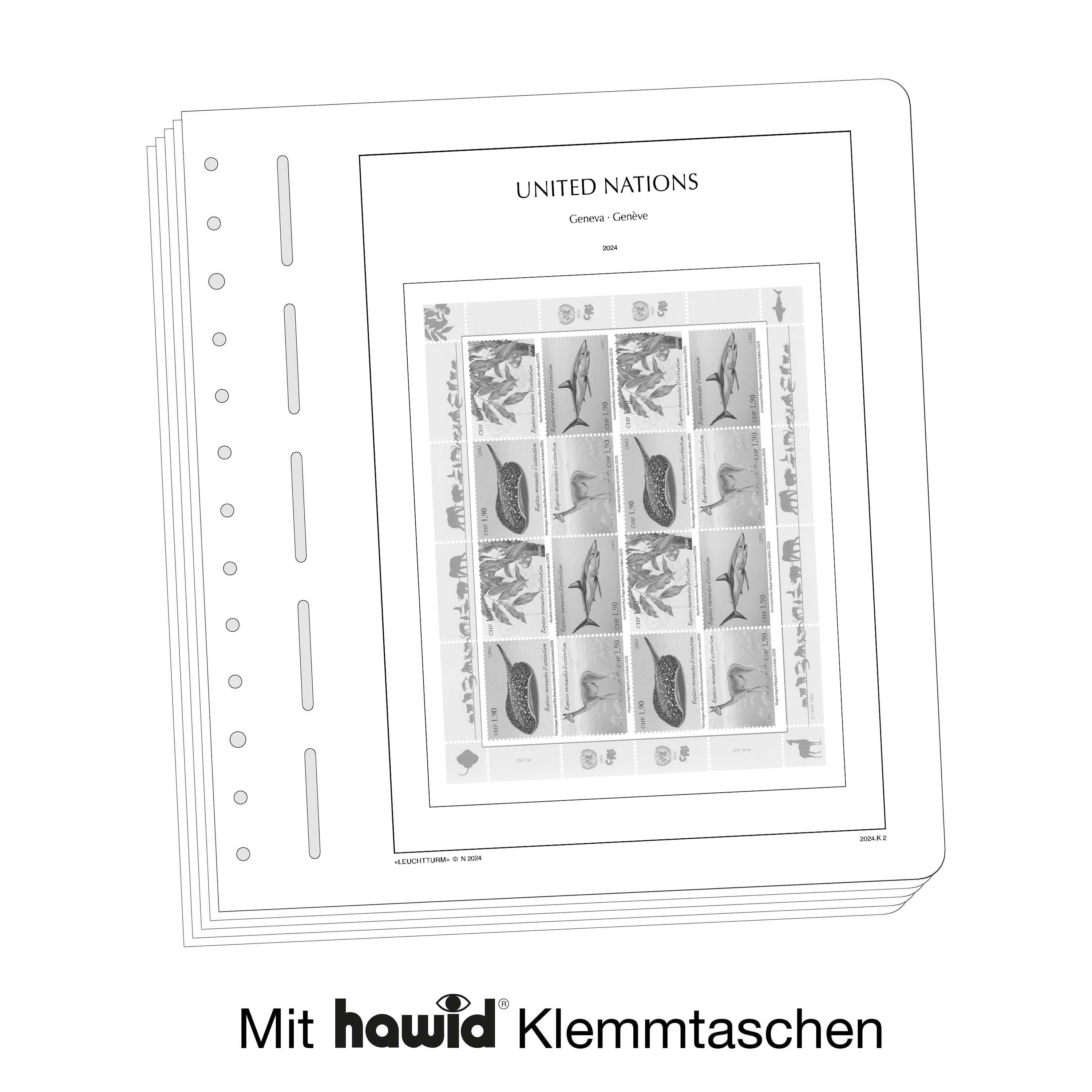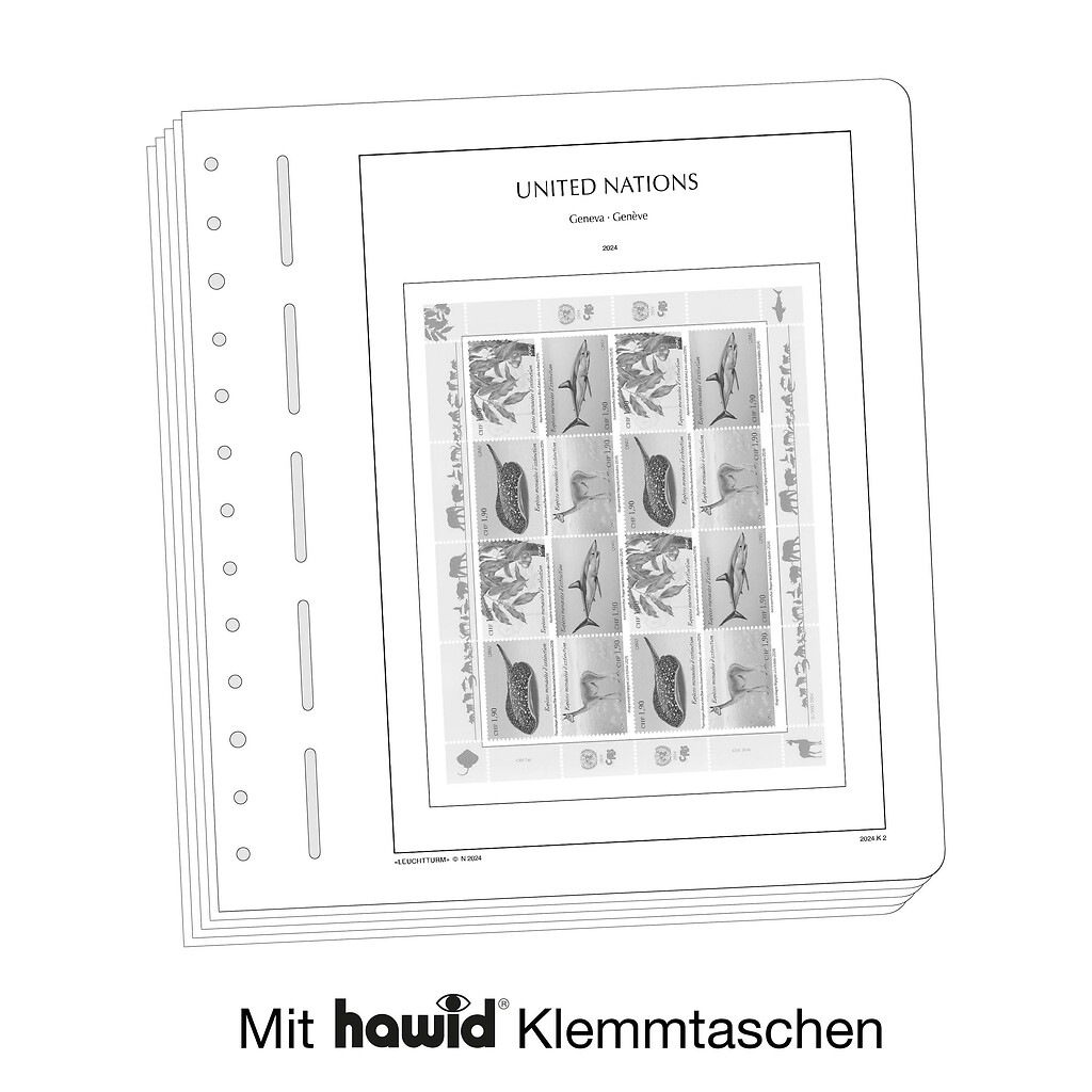 Leuchtturm Nachtrag mit Klemmtaschen UNO Genf-Kleinbogen 2025