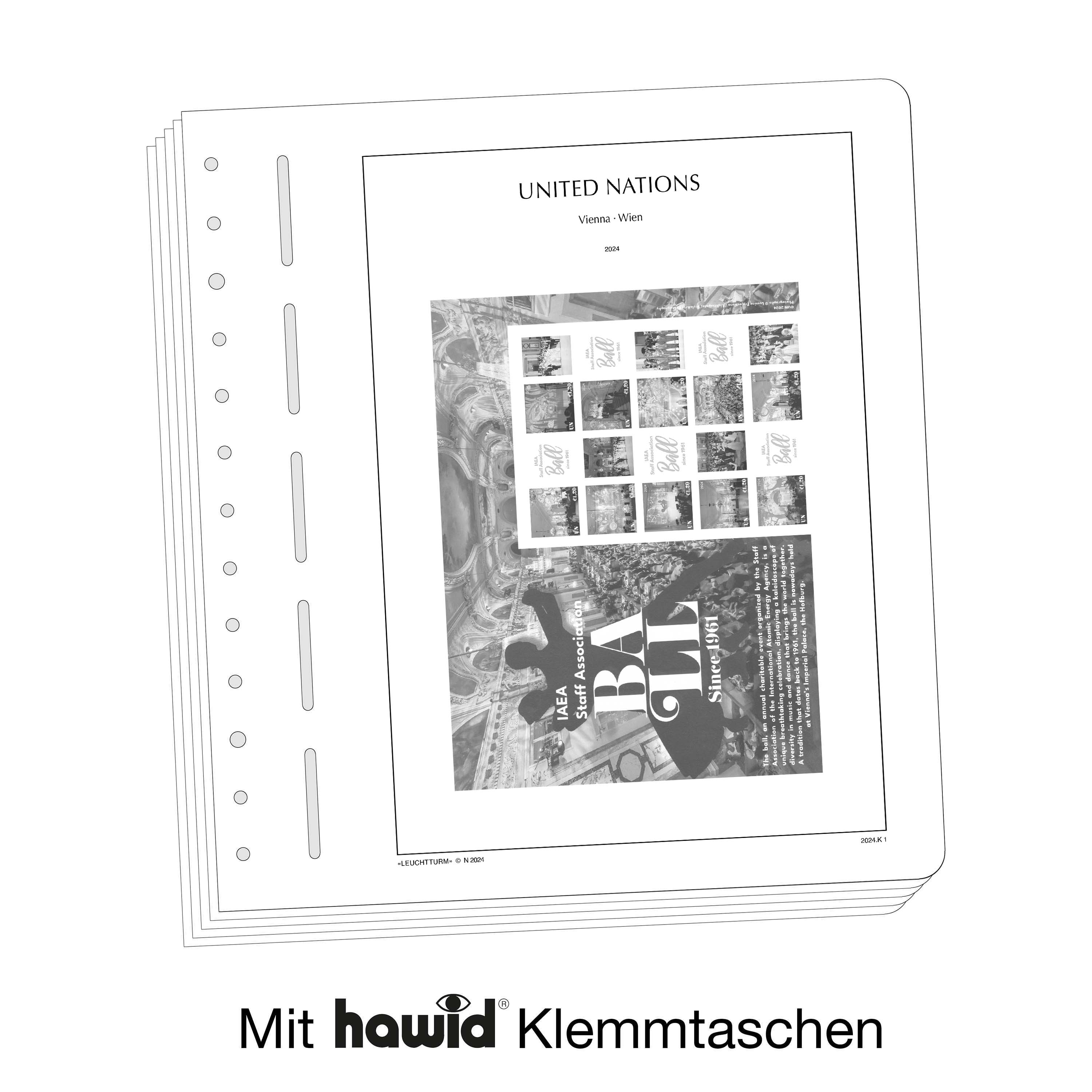 LEUCHTTURM Albenblätter (Format 270 x 297 mm/ 13-Loch-System) werden im detailgetreuen schwarz–weiß Offsetdruckauf alterungsbeständigem, holz- und säurefreiem Karton (170 g/m 2 ) gedruckt. Wir verzichten bewusst auf einen Farbdruck. Dies dient als Orientierungshilfe, damit Sie auf einen Blick sehen, welche Marken Ihnen noch fehlen. In der Größe des Markenvordrucks sind SF-Schutztaschen aus weichmacherfreier, glasklarer, entspiegelter Polystyrol-Folie auf den Albenkarton geklebt. Die Schutztaschen halten die Briefmarken präzise an ihrem Platz und verhindern ein Festkleben. Gleichzeitig bieten sie auch einen optimalen Schutz gegen Staub und Beschädigungen.