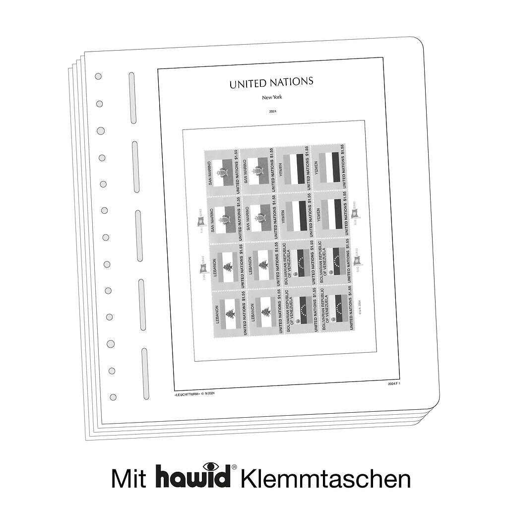 Leuchtturm Vordruckblätter mit Klemmtaschen UNO New York Flaggenbogen