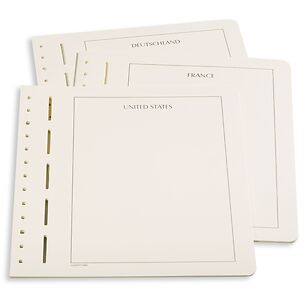 Zur weiteren Ergänzung der Vordruckalben sowie zum Aufbau individueller Sammlungen gibt es für gängige Sammelgebiete Titelblätter mit Wappen. Das Blattformat ist einheitlich 270 x 297 mm und passend für alle LEUCHTTURM-Albenbinder.