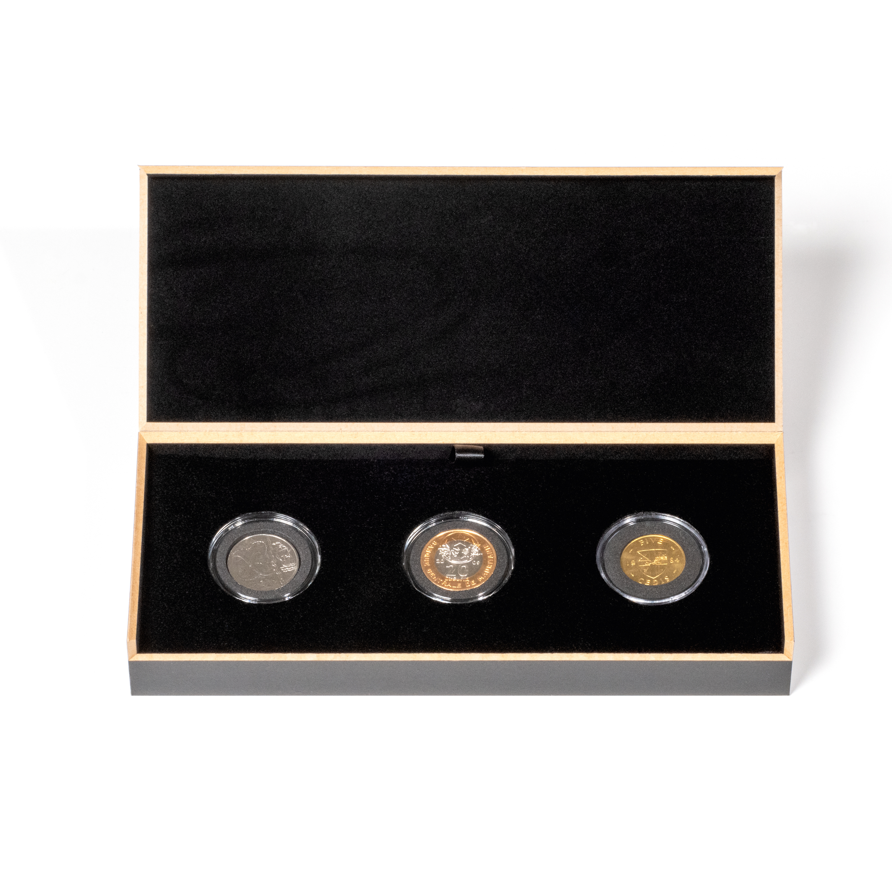 Passend für unsere Kapseln GRIPS Innendurchmesser 33 mm, ULTRA Innendurchmesser 33 mm und ULTRA Perfect Fit für 1 oz. Krügerrand Gold.