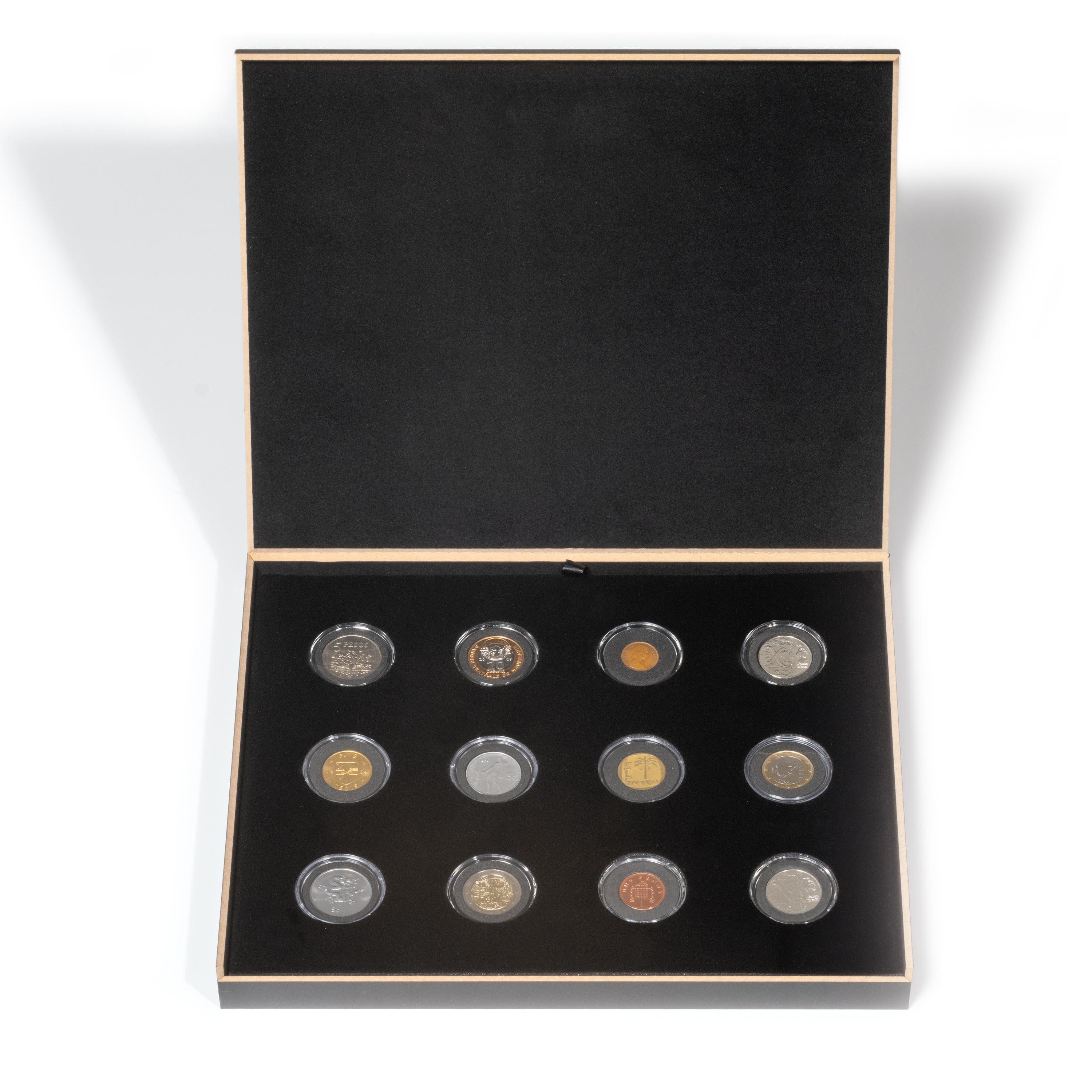 Passgenaue Perfektion – dies verkörpert das Münzetui LUXOR. Die filigrane Verarbeitung lässt Spalten verschwinden und legt somit den Fokus auf die stilvolle schwarze Oberfläche. Die samtartige Beschichtung auf der Innenseite komplettiert den noblen Look.