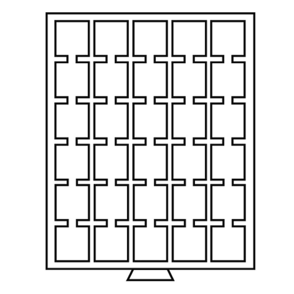 MB Münzbox mit 30 eckige Fächer, 38 x 38 mm, rauchfarben mit schwarzer Einlage