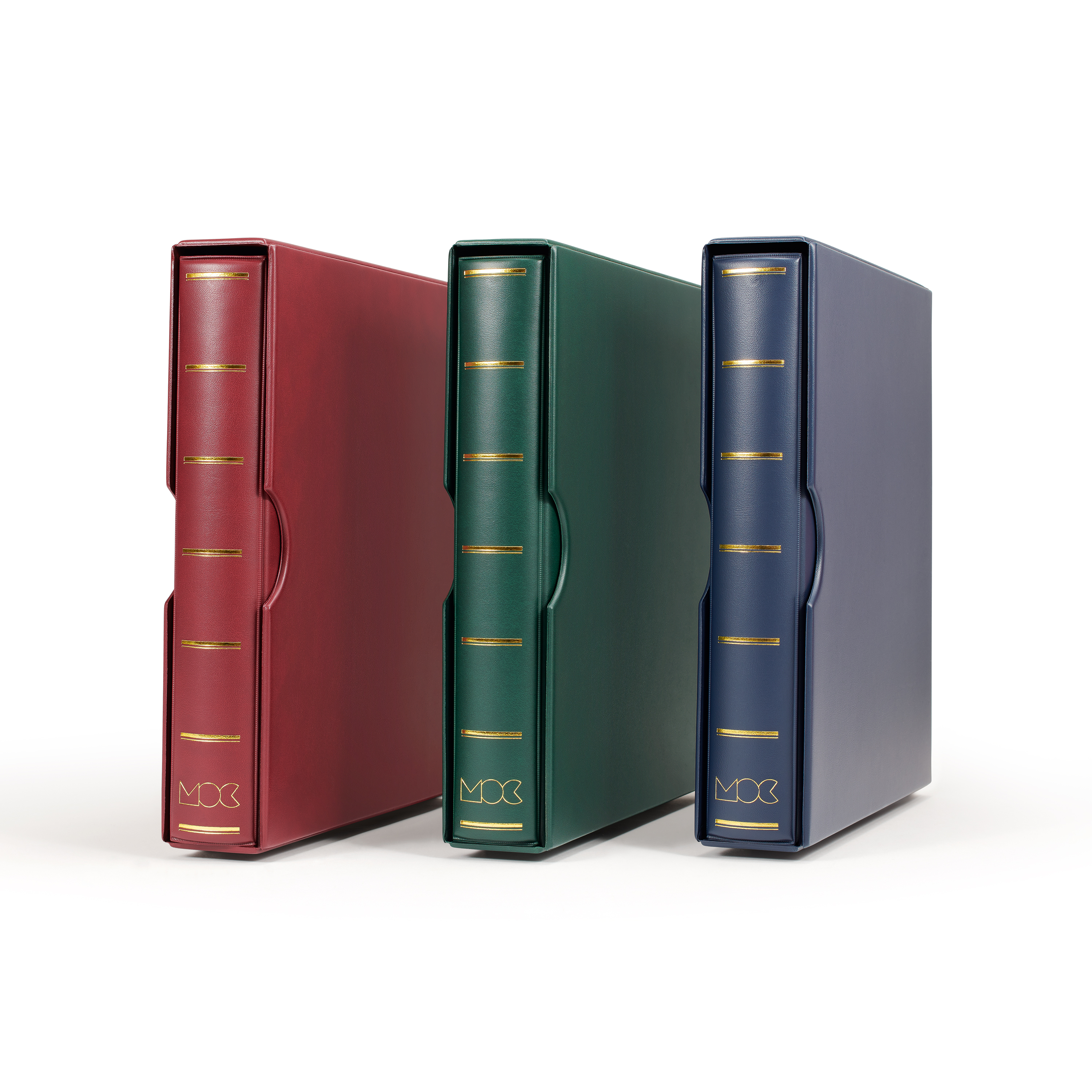 MOC Rinbinder inkl. Schutzkassette, mit Kunstledereinband und 4-Ringmechanik, Fassungsvermögen: bis zu 115 MOC SF-Vordruckblätter, 130 MOC Blankoblätter oder 80 LB-Blankoblätter, Außenformat (inkl. Schutzkassette): 313 x 283 x 60 mm
