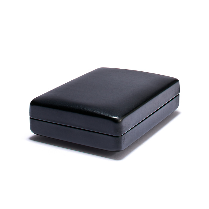 Zur anspruchsvollen Aufbewahrung von Barren in Blisterverpackung (86 mm x 54 mm) empfehlen wir Ihnen unsere Etuis NOBILE. Der seidenmatte, lederähnliche Bezugstoff sowie die Samteinlage geben ihnen eine besonders edle Anmutung. Das Satinbändchen im Deckelkissen eignet sich ideal zur Aufnahme eines vorhandenen Zertifikats. Durch seinen wertigen Metallkern eigenen sich diese Etuis auch perfekt für den sicheren Versand. Schwarz, Außenformat: 88 mm x 118 mm x 35 mm