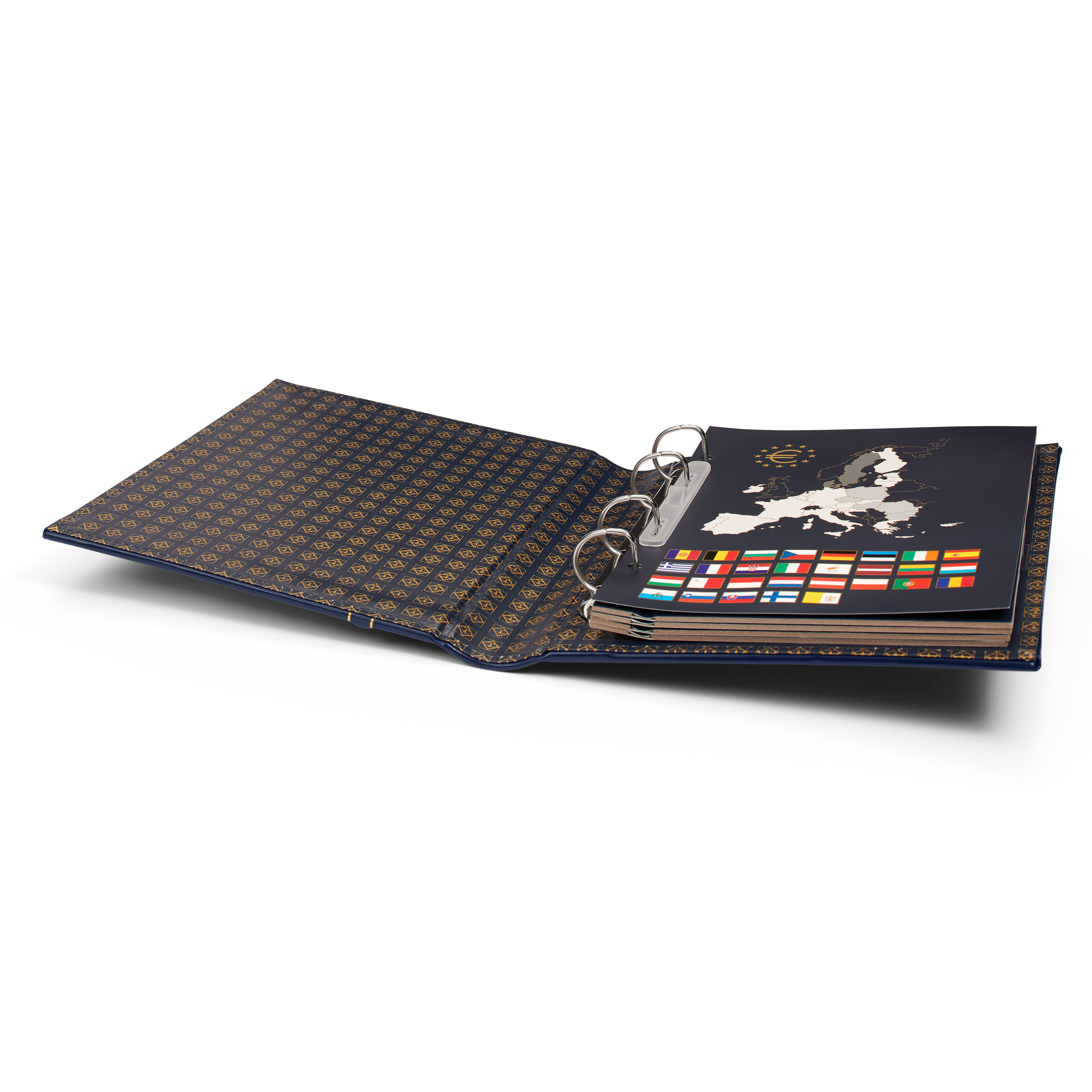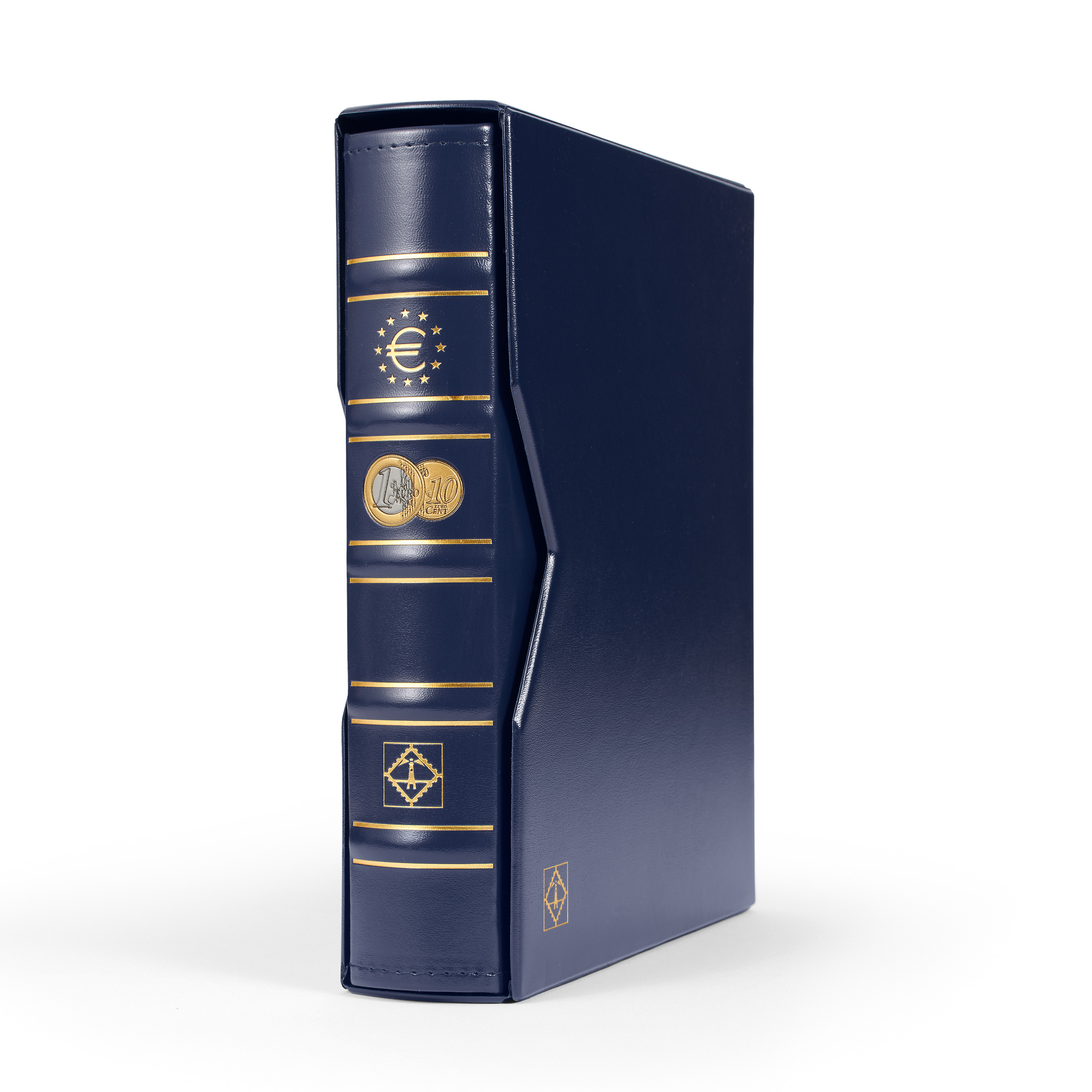 Ringbinder in buchbinderischer Verarbeitung. Edler Kunstledereinband mit eindrucksvoller Rücken- und Deckelprägung. Aufbewahrung der Münzen in allen VISTA- oder OPTIMA-Münzhüllen möglich (Hüllen nicht im Lieferumfang enthalten). Das Album fasst bis zu 9 VISTA-Münzblätter (z.B. 9 x 312494 für 180 2-Euro-Münzen). Außenformat: 245 x 270 mm.