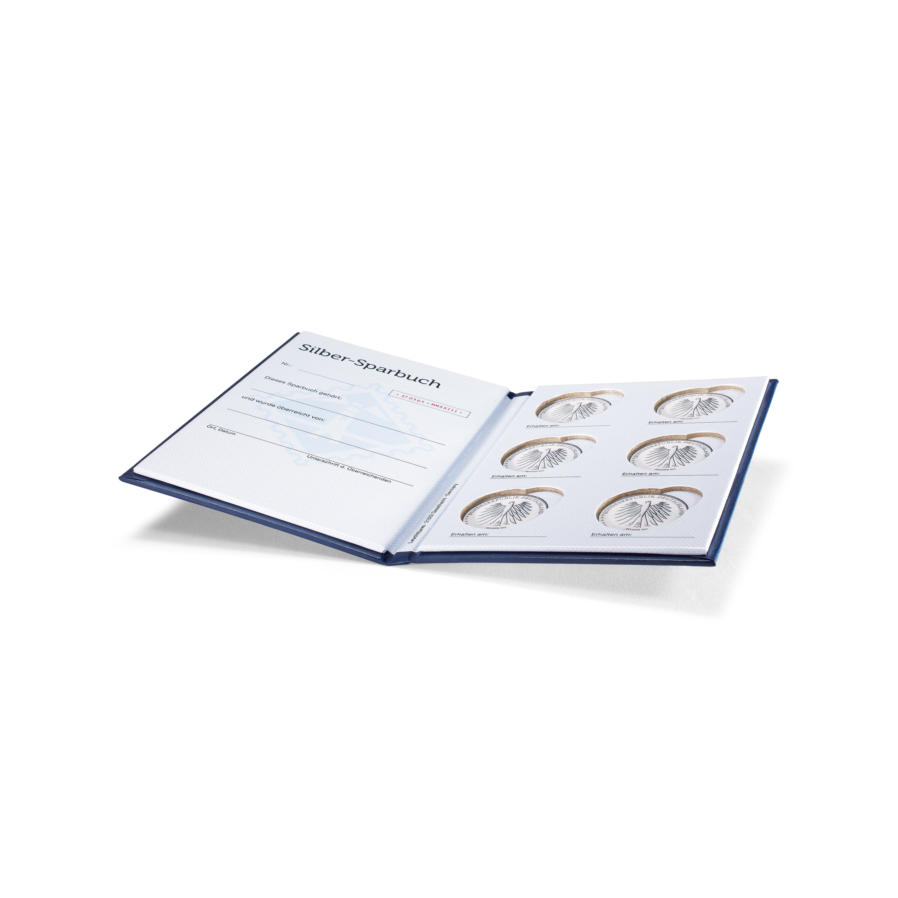 Im Design eines klassischen Sparbuchs eignet sich dieses Album ideal als erste Sparanlage für Silbermünzen. Es bietet einen einfachen Einstieg und die Möglichkeit, langfristig Wert aufzubauen.