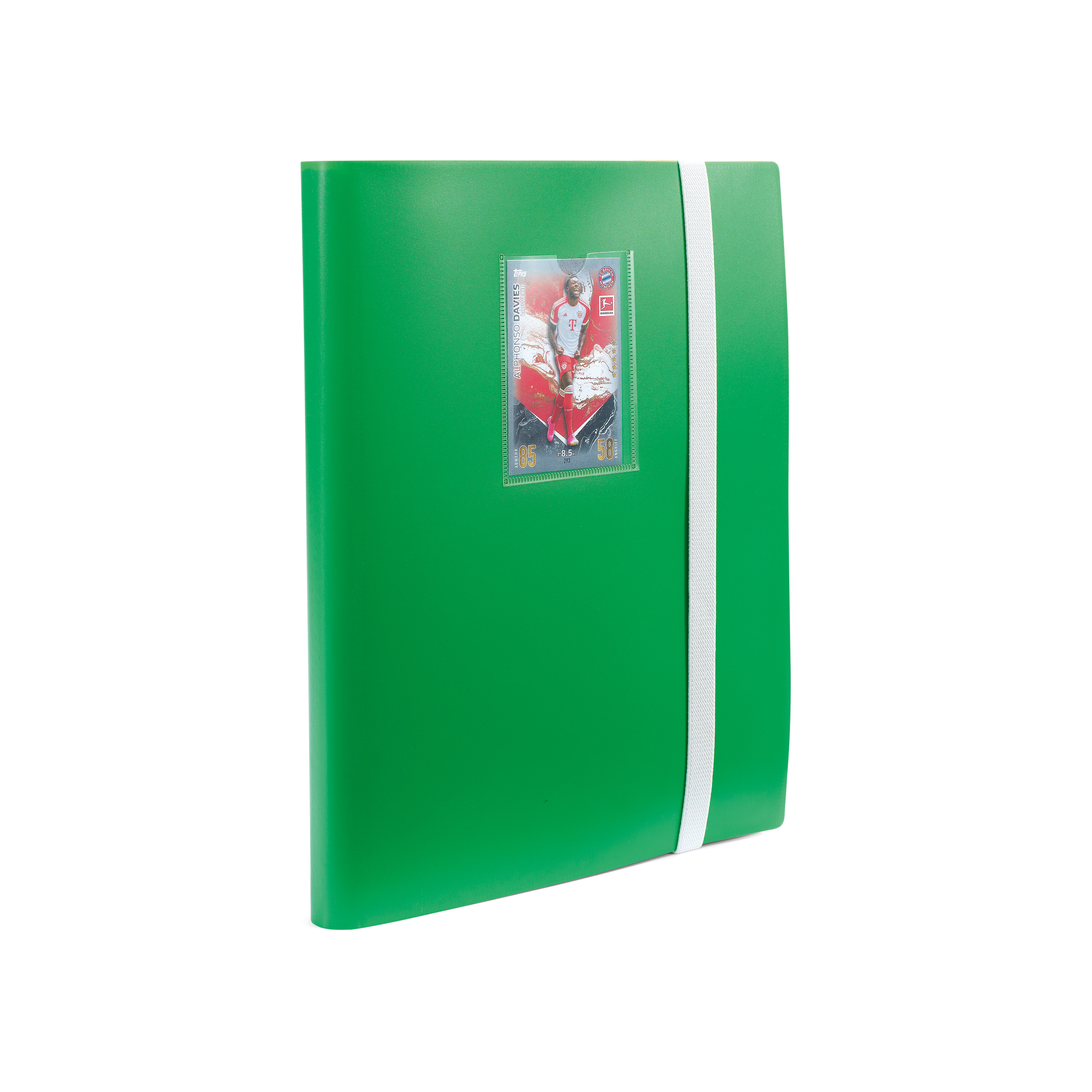 Mit dem Fußball Sammelkartenalbum Toni Slim machst du deinen Lieblingsspieler zum Man of Your Match. Es bietet Platz für bis zu 360 Sammelkarten und damit ausreichend Raum, um deine wertvolle Kollektion zu präsentieren und zu schützen. Die Einstecktasche (66 x 90mm) im Cover ermöglicht dir die individuelle Gestaltung mit einer Sammelkarte deiner Wahl, passend für eine Standardkarte mit oder ohne Inner Sleeve. Der flexible Einband sorgt dafür, dass dein Album robust und gleichzeitig leicht zu handhaben ist. Zudem gewährleistet das sichere Verschlussgummi, dass deine Sammelkarten stets geschützt sind und nicht herausfallen können, egal ob du unterwegs oder zu Hause bist. Mit einem Außenformat von 250 x 305 x 25mm und den 20 fest eingebundenen Hüllen mit je 9 Fächern (Innenformat je Fach 70 x 95mm) behältst du mit Toni stets den Überblick über deine Sammelkarten. Zudem verleihen die schwarzen Rückseiten der Hüllen dem Album eine elegante Note. Zur individuellen Beschriftung deiner Sammlung ist ein Stickerset mit Landesflaggen und Jahreszahlen im Lieferumfang enthalten. Das Album ist perfekt geeignet für alle gängigen Karten wie Bundesliga Match Attax, Champions League Match Attax, Match Attax Extra, Topps EURO 2024 Match Attax, Panini Top Class, Panini World Class oder Panini Prizm Premier League..