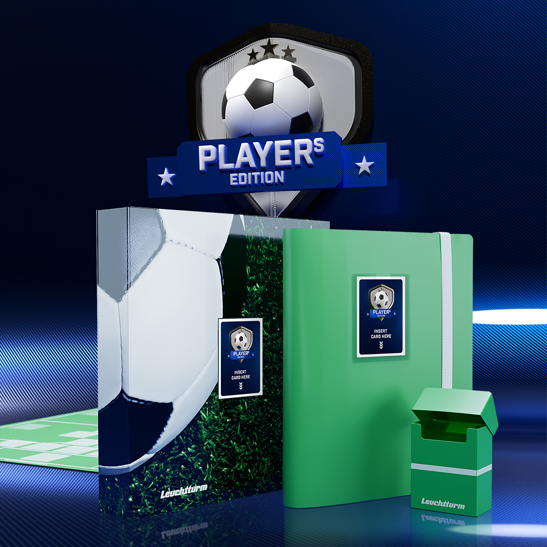 Gleichermaßen für Spieler und Sammler von Fußball Trading Cards. Sammelalben mit Sichtfenster für die Lieblingskarte, eine Deckbox mit Trennkarten, Sleeves und Sheets für den Schutz der begehrten Karten und zwei Spielmatten.