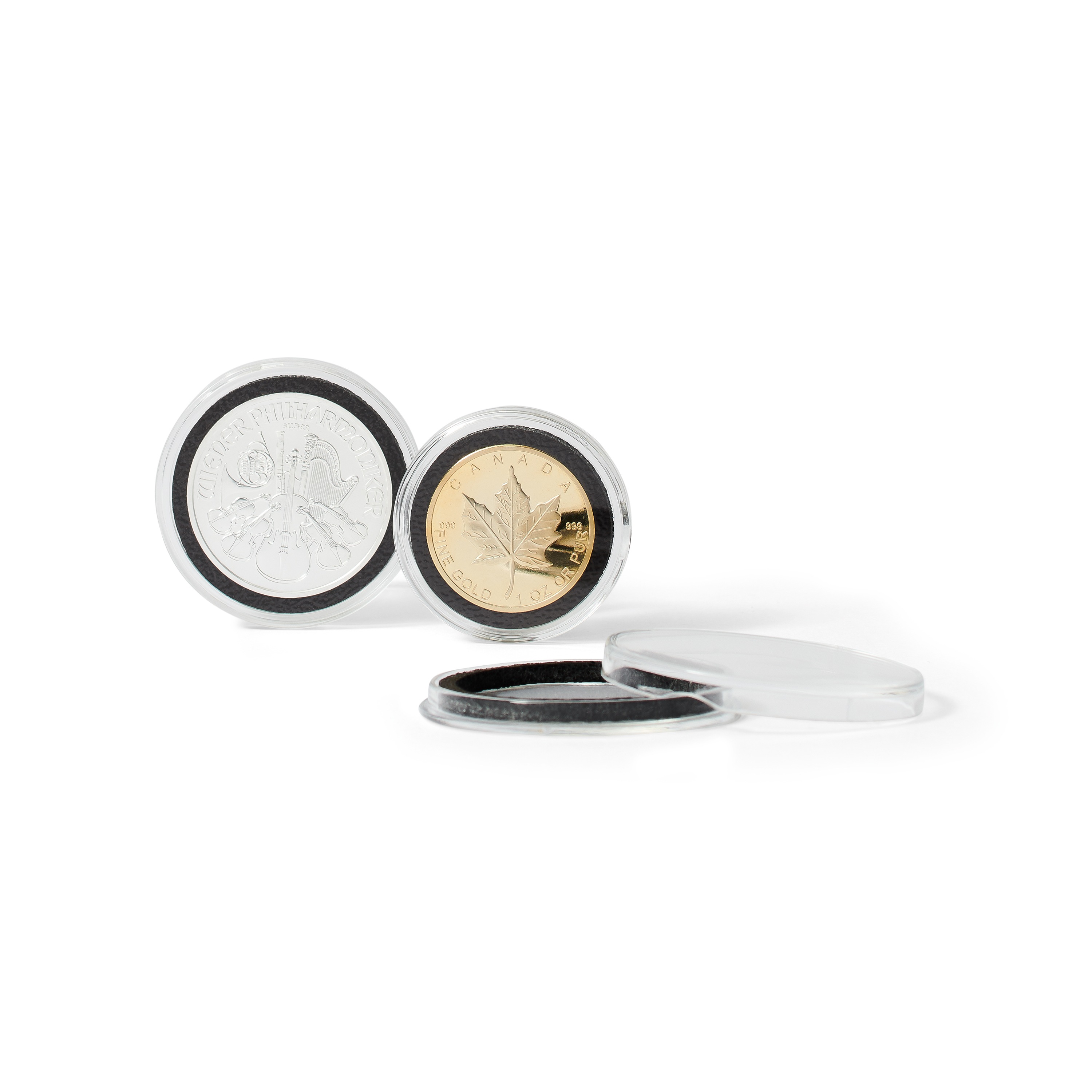 Der 3 mm starke Schaumstoffring in den Kapseln basiert auf der seit über 30 Jahren patentierten Intercept-Technologie. Die im Material enthaltenen Kupferpartikel binden korrosive Gase dauerhaft und erzeugen in kürzester Zeit eine neutralisierte Atmosphäre, die die Münzen aktiv vor Oxidierung schützt (garantierter Schutz von bis zu 15 Jahren*). Die Wirkung wurde u.a. nach den bewährten Normen DIN, EN, ISO und ASTM nachgewiesen. Erhältlich für alle Münzen von 16 mm und 22 bis 41 mm Durchmesser (in Millimeter-Schritten).