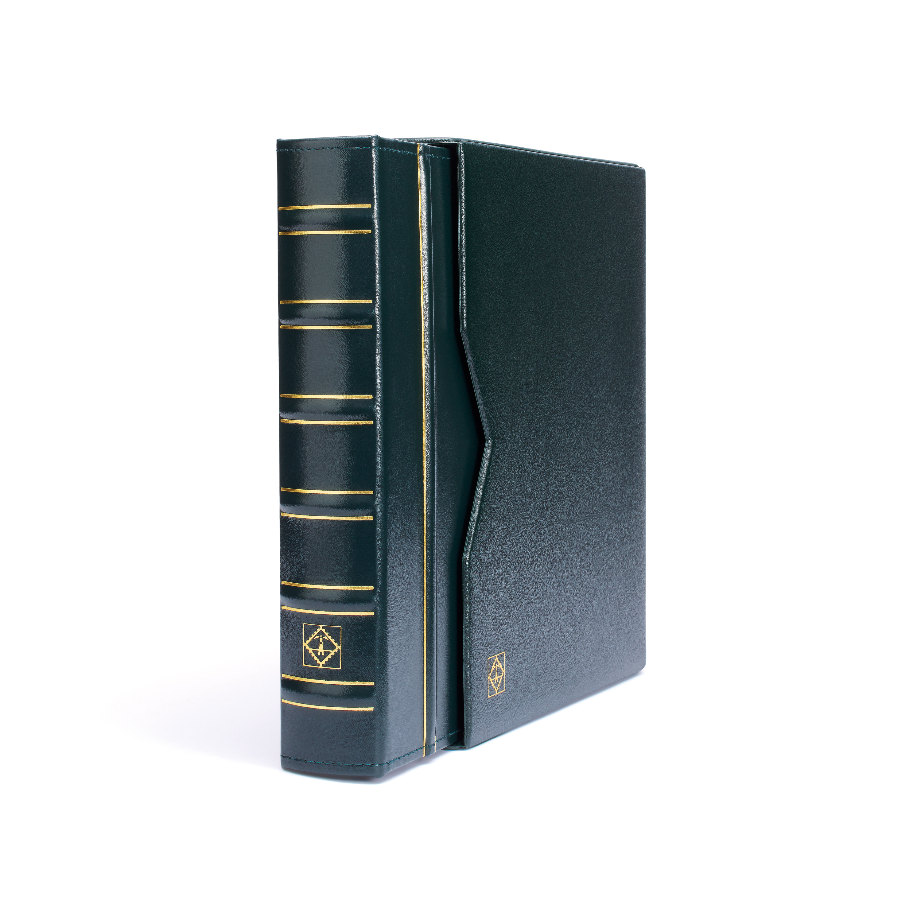 Buchbinderische Verarbeitung, Kunstledereinband mit Schutzkarton, Fassungsvermögen: bis zu 60 Tafeln (abhängig von der Stä