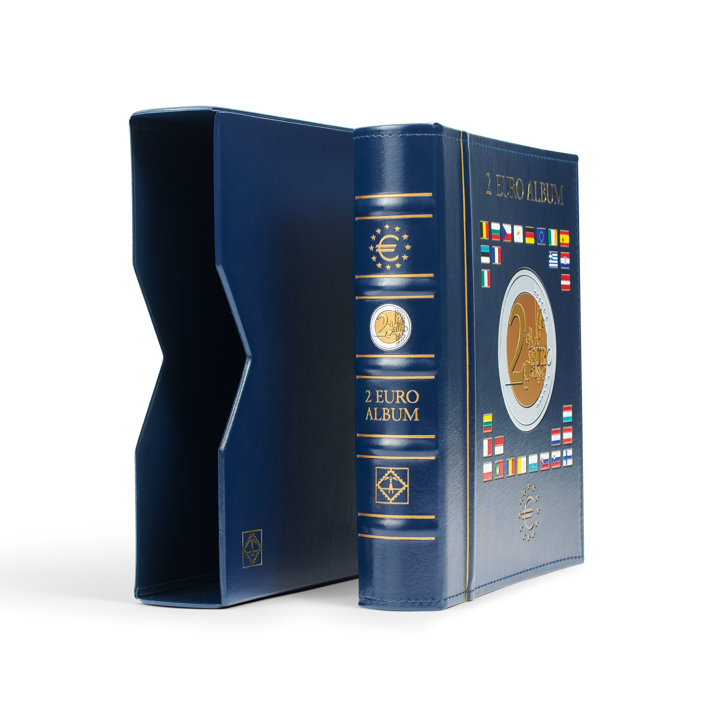 Vista Münzalbum für 2 Euro Münzen, inkl. 4 Vista Münzblättern und Schutzkassette, blau