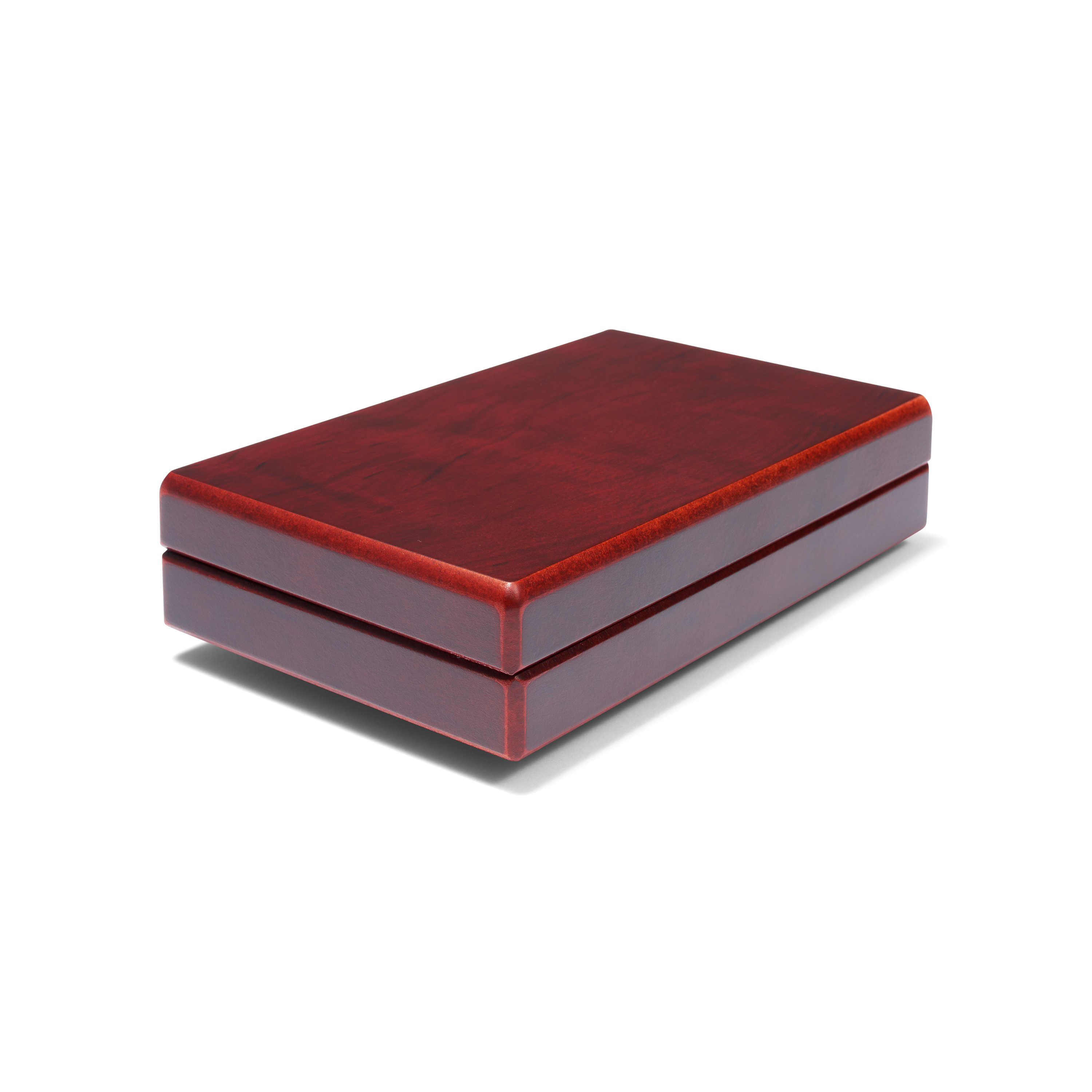 Münz-Etui in mahagonifarbener Holzmaserung zur Aufbewahrung von QUADRUM-Münzkapseln. Deckelkissen mit schwarzem Satin gepolstert. Bodenteil mit veloursartiger Oberfläche. Vertiefungen von 50 x 50 mm. Besonders leichtes Herausnehmen der QUADRUM-Münzkapseln durch integrierten "Kipp-Mechanismus".