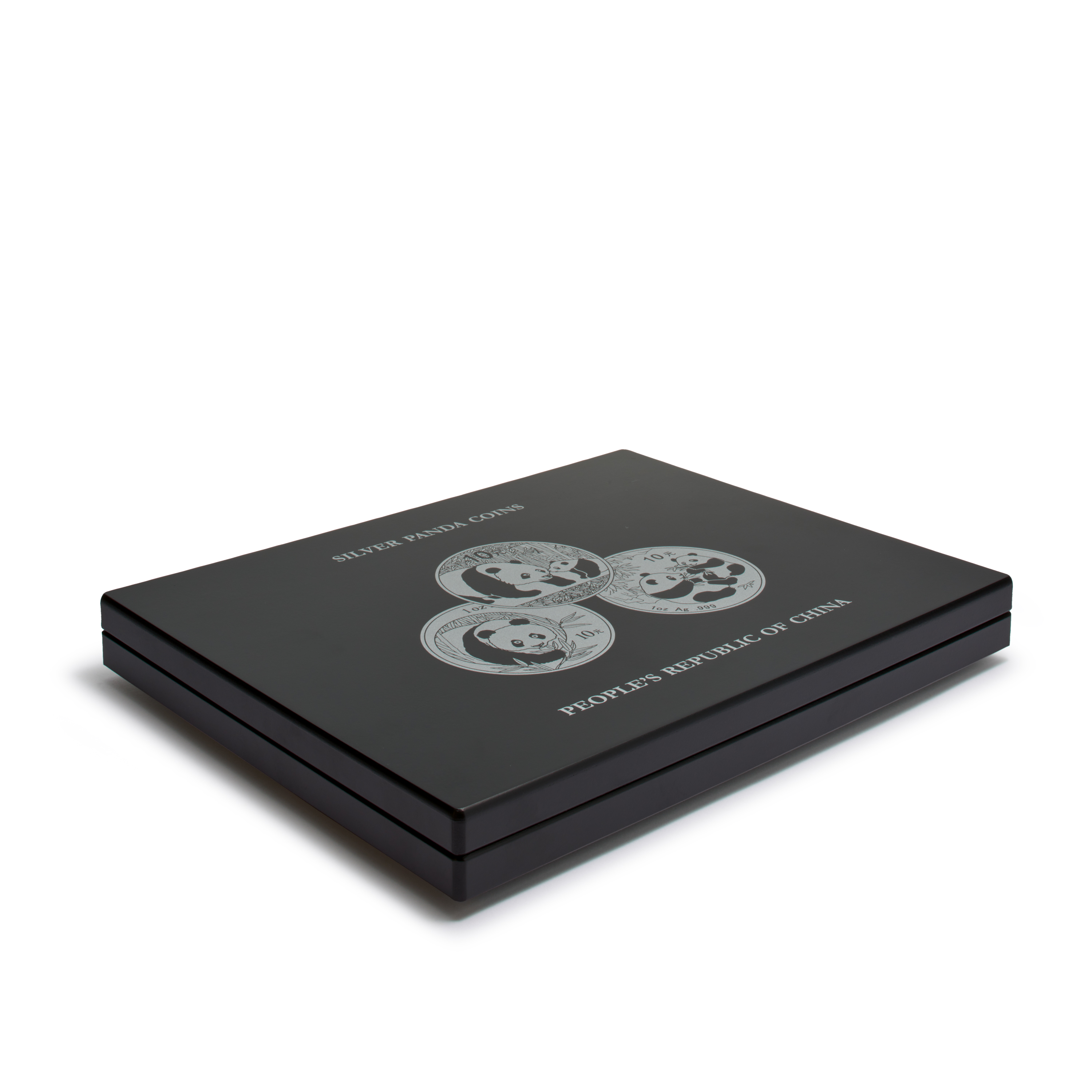 Die hochwertige, schwarze Münzkassette eignet sich hervorragend zum Sammeln der begehrten Panda-Silbermünzen in Original-Kapseln, sowohl in der Ausführung 1 oz. als auch in der Ausführung 30 g (ab 2016). 1 Einlage mit schwarzer, veloursartiger Oberfläche und 20 runden Feldern (Ø 45,4 mm). Edler, silberfarbener Deckel- und Kissendruck mit niedlichen Münzmotiven der Panda- Silbermünzen. Deckelkissen mit schwarzem Satin gepolstert. Sicherer und unauffälliger Magnetverschluss. Außenformat: 305 x 245 x 30 mm.