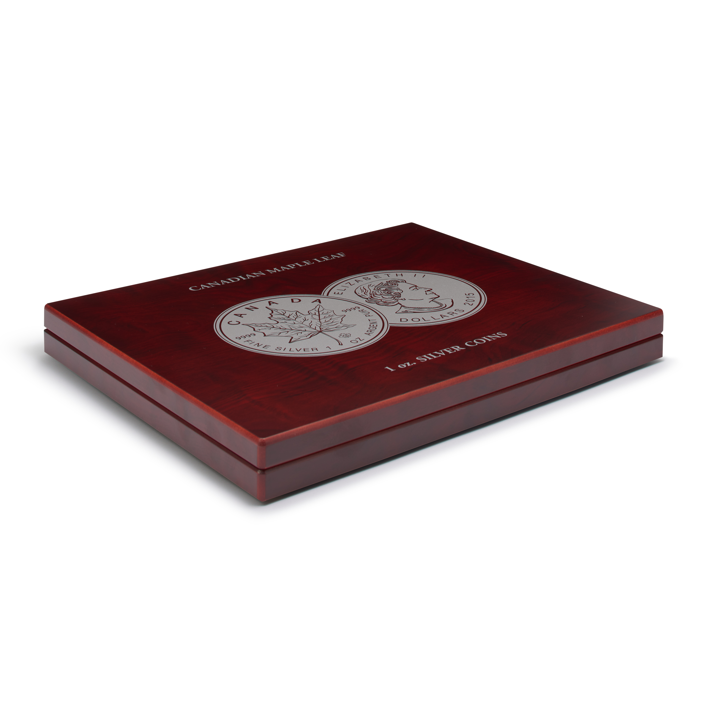 Volterra Uno -Münzkassette für 20 Silbermünzen „Maple Leaf“ in Kapseln, mahagoni