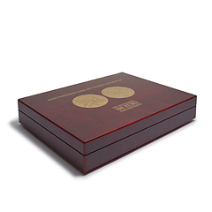 Die 100-Euro-Goldmünzen aus Deutschland gelten als die Königsklasse des Investments und des Sammelns - seit 2002 hat sich dieses Sammelgebiet zu einem absoluten Bestseller entwickelt und hat sowohl in Deutschland als auch international viele Fans. Und Seit 2023 begeistert die Bundesrepublik anspruchsvolle Anleger und Sammler mit einer neuen Münzenserie, nachdem die UNESCO-Welterbeserie (2002 - 2019) und die Miniserie „Säulen der Demokratie“ (2020 - 2022) abgeschlossen wurden. Nun stehen Meisterwerke der Deutschen Literatur im Mittelpunkt der Goldmünzen aus Deutschland. Die Weltklasse-Motive werden in einem edlen Etui geliefert. Für Sammler bestand bislang das Problem, dass sie diese Etuis nicht in ästhetisch ansprechender Form in einer Aufbewahrungsmöglichkeit gemeinsam mit den Münzen platzieren konnten. Hier schafft Leuchtturm endlich Abhilfe: Die VOLTERRA Kassette 100 Euro Gold "Meisterwerke deutscher Literatur" verfügt über ein Einlege-Tableau mit Aussparungen für acht Münzen. Darunter befindet sich der Clou, nämlich eine zweite Ebene zur Aufbewahrung der Etuis. So können Liebhaber der deutschen Goldmünzen die prächtigen Prägungen auf einen Blick versammeln und die Etuis unauffällig verstecken, haben sie bei Bedarf jedoch stets zur Hand. Die edle Velours-Optik unterstreicht den Anspruch dieses Zubehörproduktes, den besten Goldmünzen aus Deutschland den schönsten Rahmen zu bieten.
