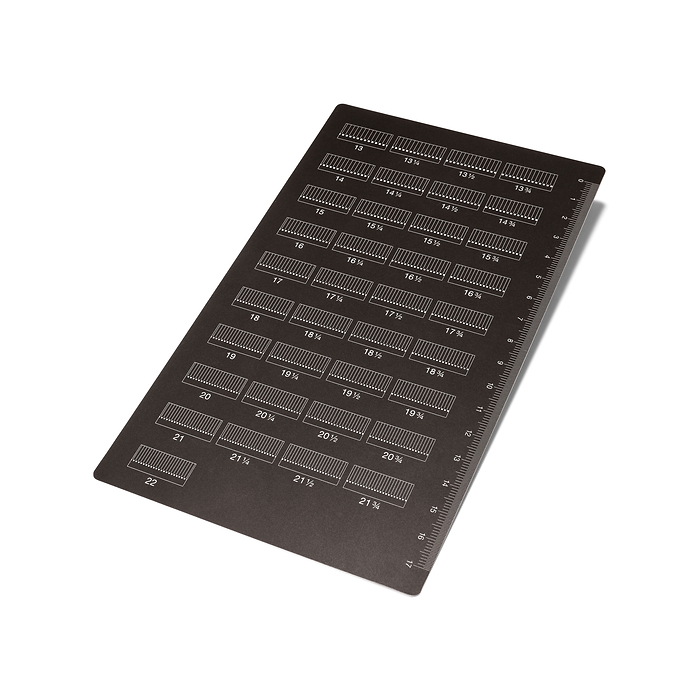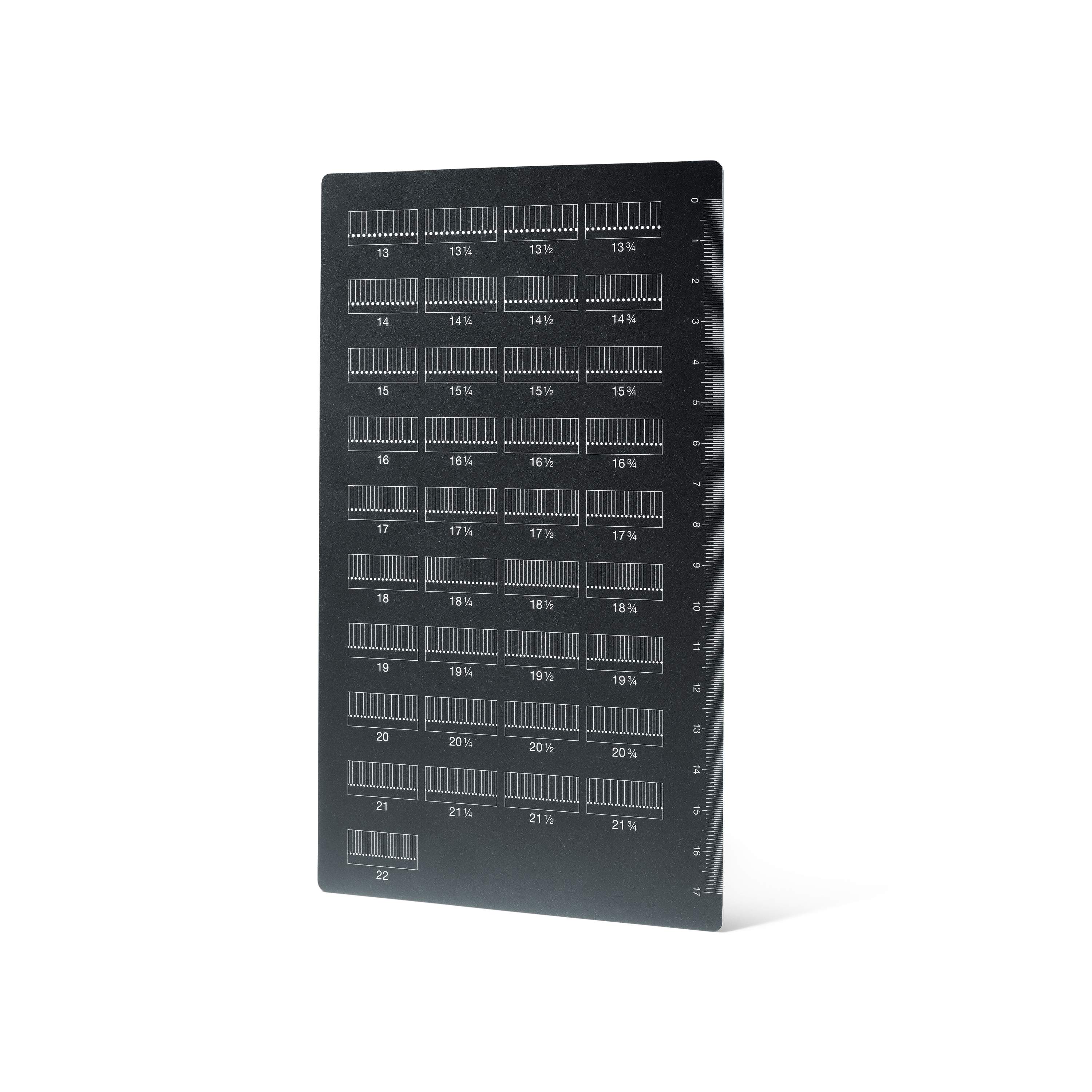 Zähnungsschlüssel zur Bestimmung der Zähnung von Briefmarken. Dazu einfach die Briefmarke an die jeweilige Skala anlegen, bis die einzelnen Zahnspitzen exakt